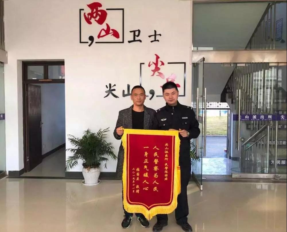 11月11日,张先生赶到磐安县公安局尖山派出所,送来了一面锦旗,锦旗上写着“人民警察为人民,一身正气暖人心”,感谢民警为他挽回了7000元损失。