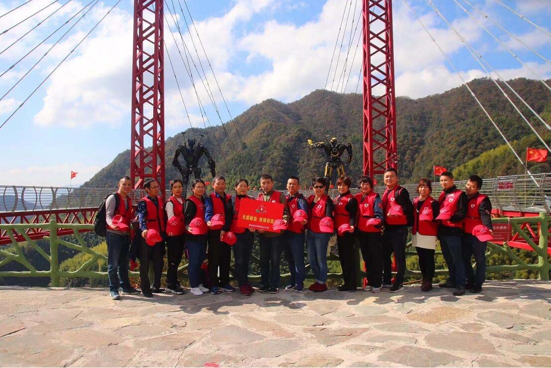 11月6日,在磐安县卫生健康局的组织下,来自金华市无偿献血志愿者宣传服务队和磐安县无偿献血志愿队的80余名无偿献血奉献奖获得者走进磐安县灵江源森林公园、双峰古民居等地开展无偿献血“三免政策”宣传活动。