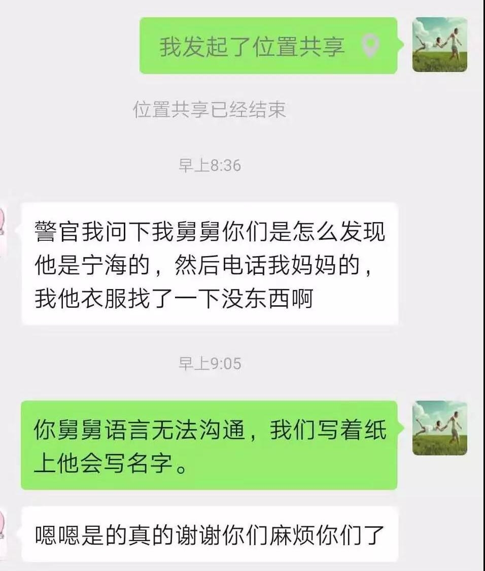 有了全名后,民警通过系统查找,发现了三个同名人员,外貌最为相似的一个,显示居住地为宁海。经电话联系家属后,家属表示三天前老人就走失了,已向当地公安机关报案,但一直没发现去向。家人表示,老人智力不如常人,身上也没有任何证件,家人都非常着急。