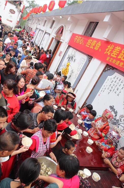 “千人长桌宴好吃又有趣,真是不虚此行!”游客们还一同享用了千人长桌宴,宴席延绵近百米,座无虚席。村民们将桌椅沿狭长曲折的村道一字摆开,端出自家秋收的绿蔬、珍藏的土货以及用祖传技艺精心烹饪的菜肴,款待四方来客。餐后还举行了二人三足跑、螃蟹背西瓜、摸石过河等趣味十足的互动游戏。