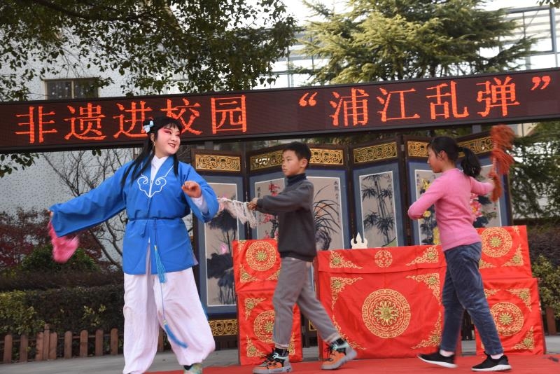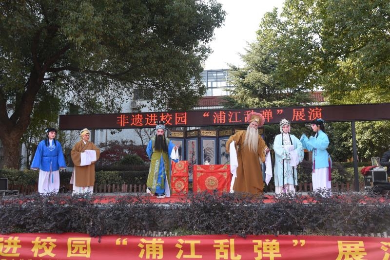 12月13日,微风和煦,阳光正好。由县文化局、教育局主办的“非遗进校园, ‘浦江乱弹’展演”首场展演活动同时在浦江县实验小学和龙峰国际学校同时 举行,吸引了两校近3000名师生观看。