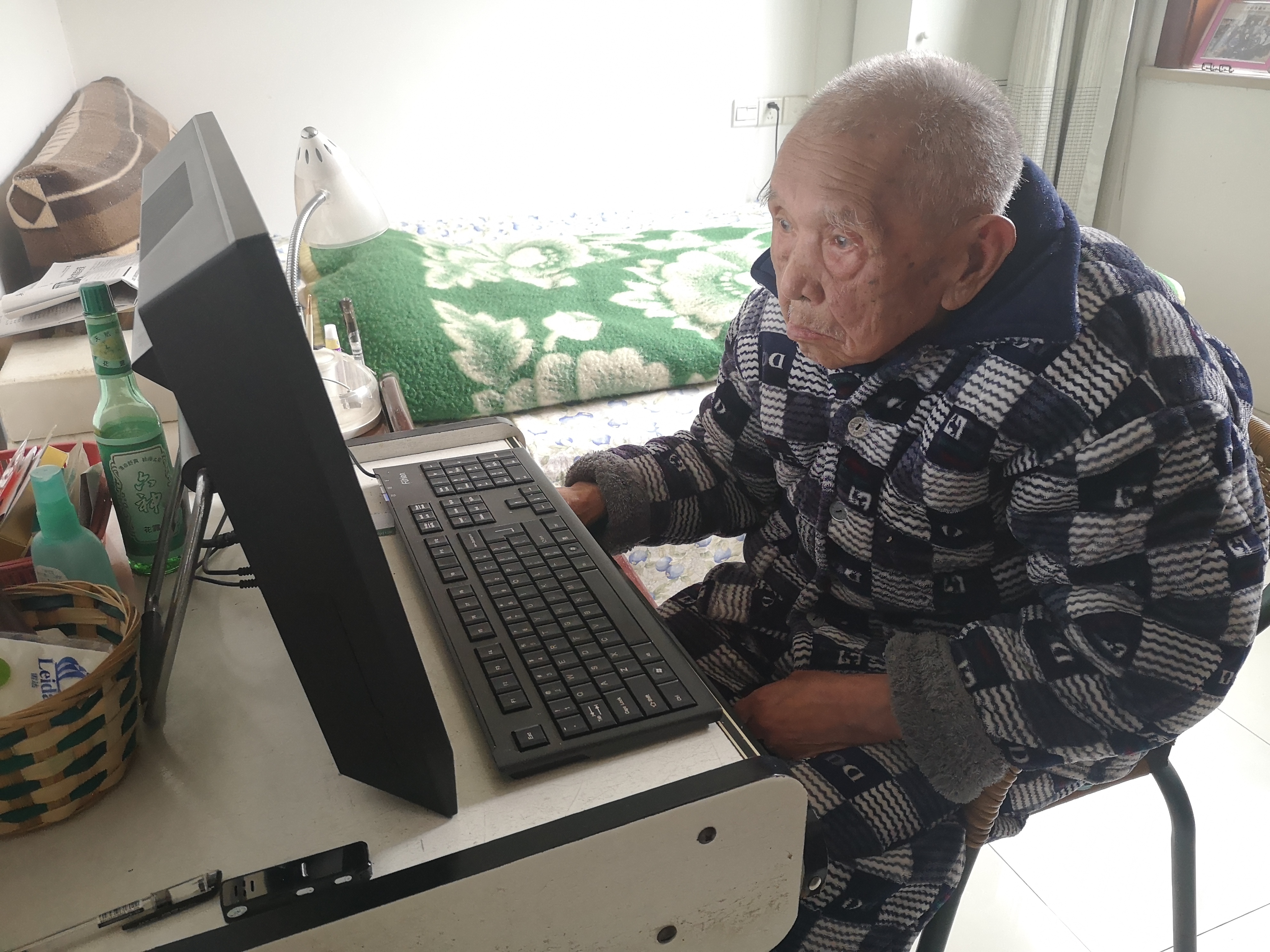 昨天中午12时,记者抵达赵克孝家里时,这位93岁的老人正坐在电脑前玩游戏。他喜欢晚睡晚起,每天晚上11点睡觉,第二天中午10时许起床,一日三餐都自己烧。赵克孝关注国内外局势,也喜欢坐在电脑前玩单机游戏,或写文章记录所思所想,回忆过去。他80多岁时自学五笔,如今已敲打的10多万字。