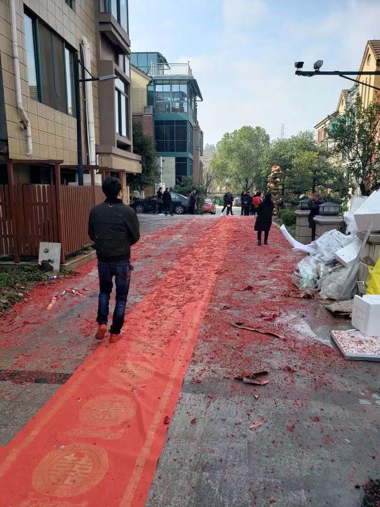 经现场查看,执法队员们在现场地面发现大面积爆竹残骸、遗留碎屑。经调查,当事人为小区住户,因家里操办喜事而从温州永嘉县购入烟花,在当天上午11时05分于门前空地擅自燃放烟花爆竹,鸣放高空礼炮。执法队员立即对现场进行视频、照片取证并报警,警方表示将按规定进行严厉处罚。
