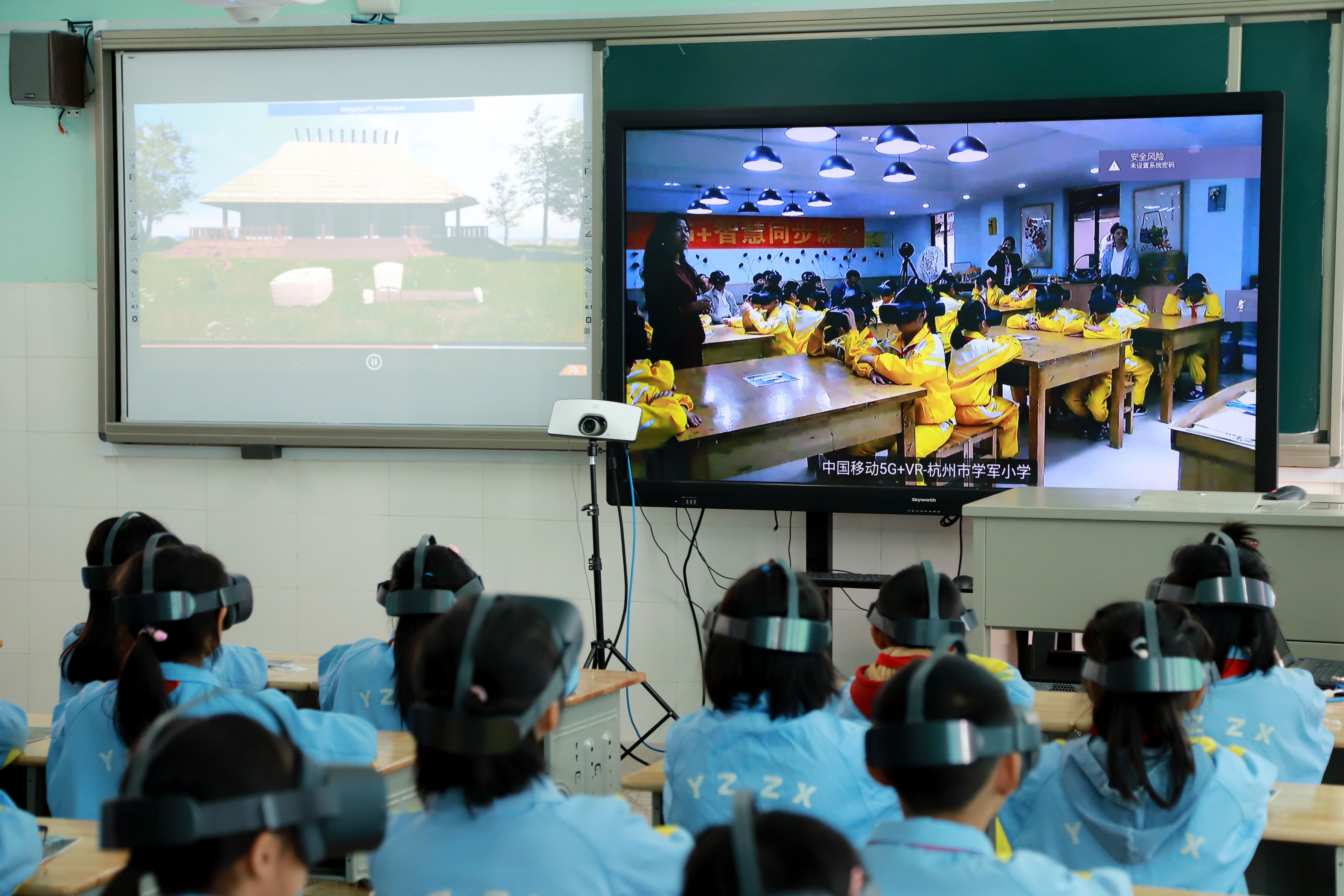 此外,浦江县还将研究成果辐射到周边兄弟县市,与磐安县、武义县、兰溪市成立“浙中同步课堂共同体”,与四川省乐山市金口河区开展跨省同步课堂送教活动。在浙江省“互联网+义务教育”结对帮扶活动中,浦江县已有13所学校分别与省内不同区域学校结对。今年10月31日,浦江县虞宅乡中心小学与杭州学军小学各25名学生,在移动5G技术的支持下,制定“视频直播+全景直播+VR虚拟课堂”的解决方案,实现异地上课、同步学习、实时互动,这也是浙江省内首次跨地市5G空中VR远程课堂。