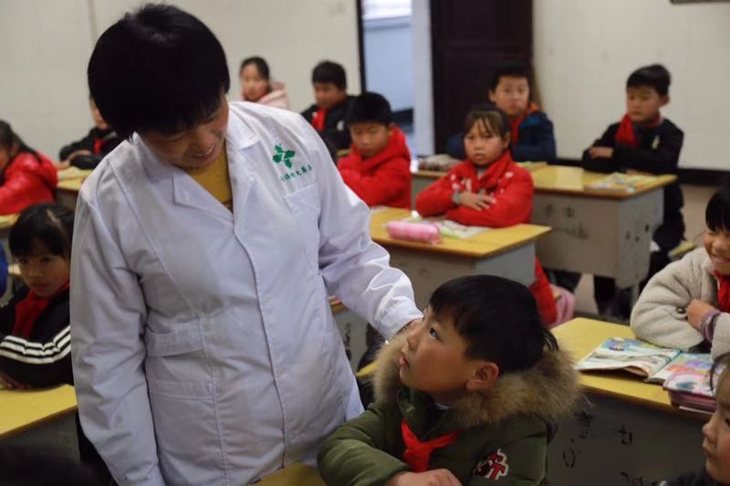 "冬天手上会生冻疮的小朋友请举手。""我,我⋯⋯"12月23日清晨,浦江县西部山区虞宅乡中心小学二(1)班教室内,一位穿着白大褂的女医生正跟孩子们亲切地交流,传授一些冬季防冻,防传染病知识。该女医生叫虞香英,是虞宅中小新近从乡卫生院聘请的卫生专技人员。每天周一至周五的晨会和早读时间,她都会准时来到学校,走进每个班级开展宣传、巡查等工作,及时掌握全校师生有无传染病、常见病、多发病等发病情况。