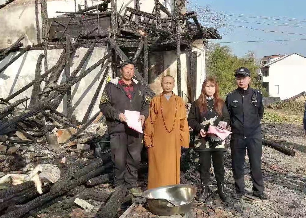 就是在这次走访中,他发现村民王某的困难处境。原来,12月12日6时,斐湖村村民王某家中因煤气桶爆炸发生火灾,共烧毁王某和其邻居周某两户人家4间砖瓦木质结构房,所幸无人员伤亡。