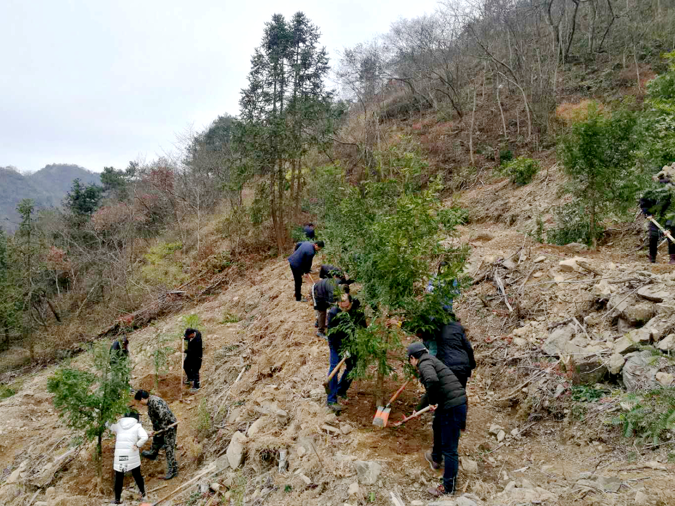 今天是2020年的第一个工作日,上午,东阳市林业局、林业总场干部职工共60多人冒着寒风,到林业总场西甑山龙门林点参加义务植树。