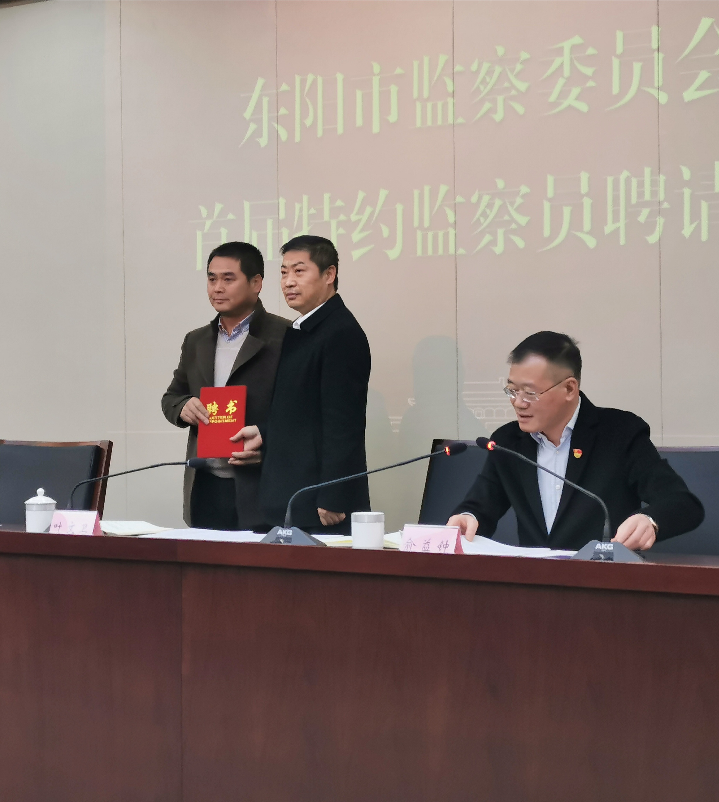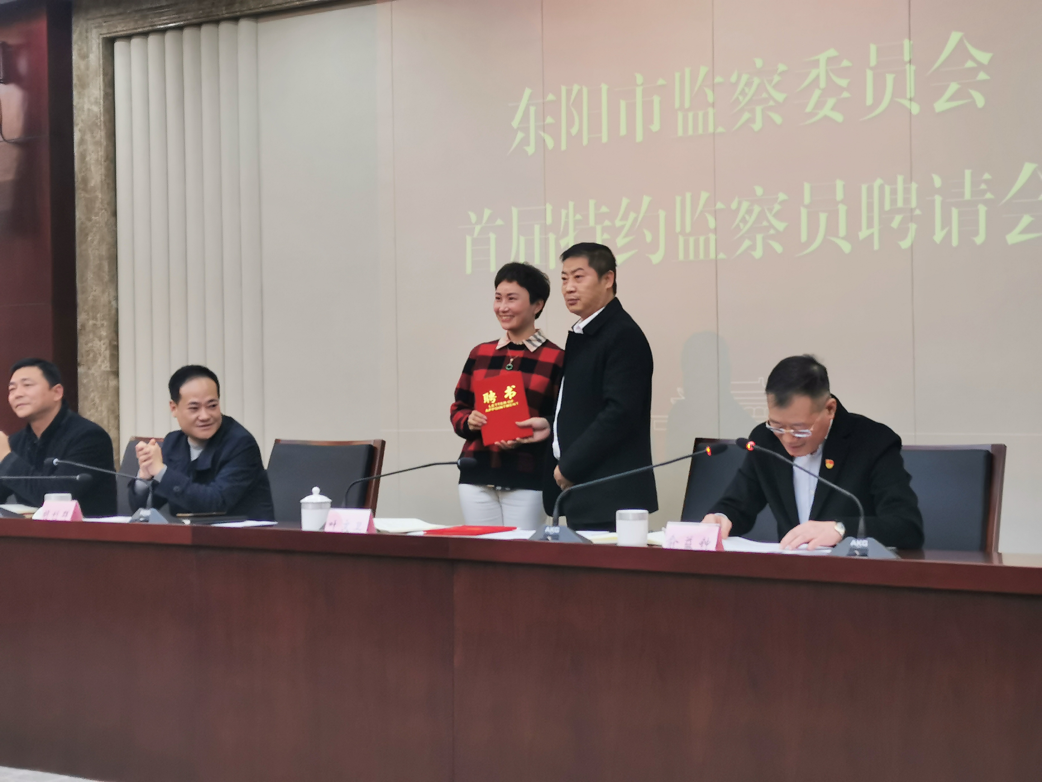 昨日下午,东阳市21名社会各界人士从东阳市监委主要负责人手中接过聘书,成为东阳市监委首届特约监察员。