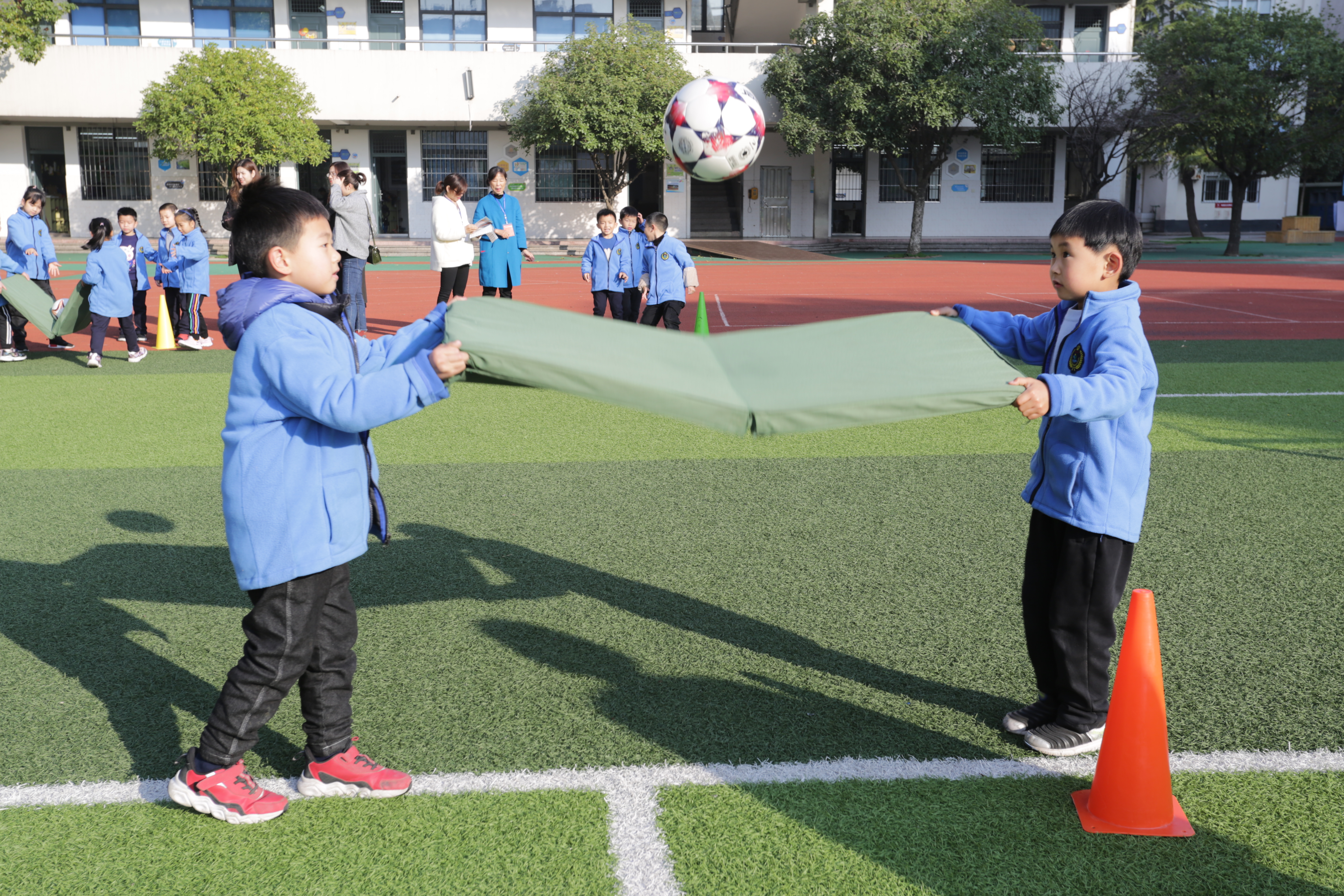 “请问你们准备好了吗?”“准备好了。”“好的,请出发。”1月7日上午,江滨小学一(8)班的方泽颢正聚精会神的和同学相互合作,把一个足球用小体操垫抬起到10米折返处,然后两人用手上下抬起三次完成了颠球动作,随后绕过标志桶,顺利回到出发点。