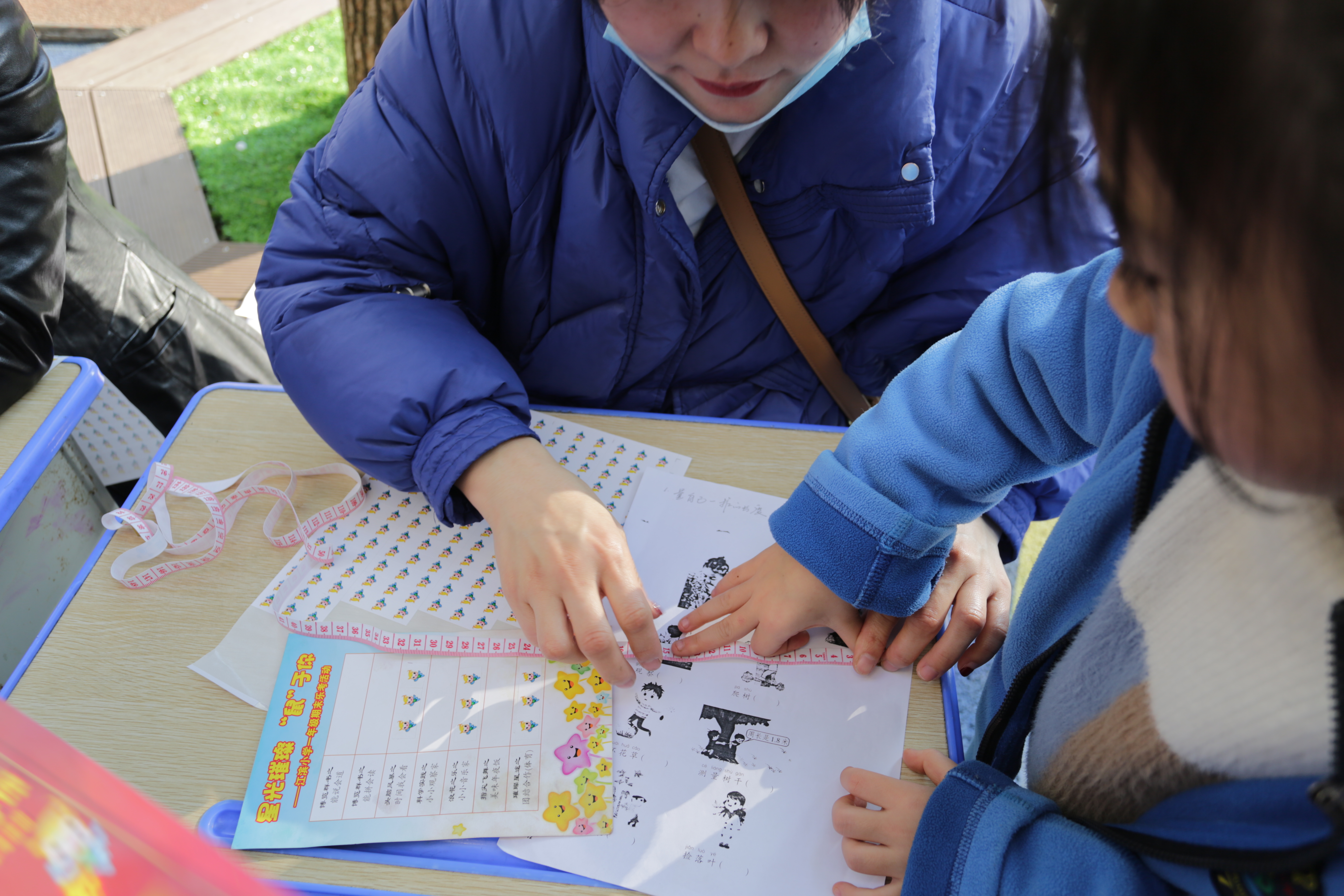 在新建的“木托邦”STEAM实践中心门口,进行的是科学科目的考试。“请张开手掌,量出大拇指与中指之间一柞的距离有多少。”“额……是14厘米。”“恭喜你,回答正确。”在二楼“映雪留香”开放式阅读馆,进行的则是包含看图说话、拼音读写等多个内容的语文科目考试。孩子们一边排着队,一边不时张望阅读馆里有哪些种类的书籍。“这里的书好多,我看到有好几本是我想看的。”一(5)班的贾子栩栩告诉记者,看书是自己的兴趣爱好,希望能在学校找到自己喜欢的课外书。