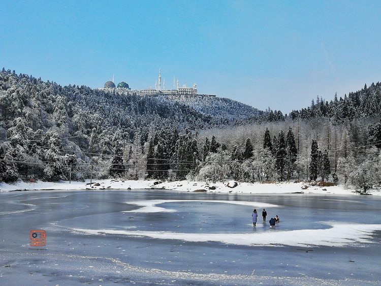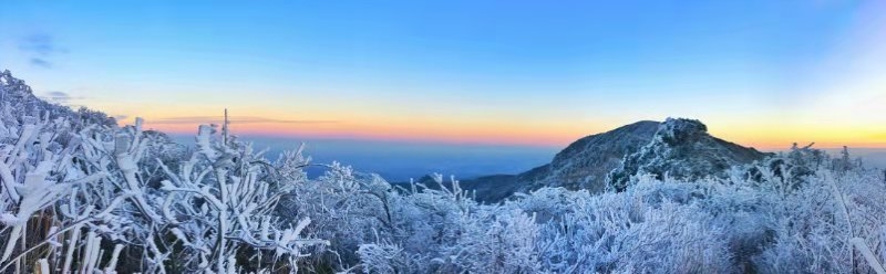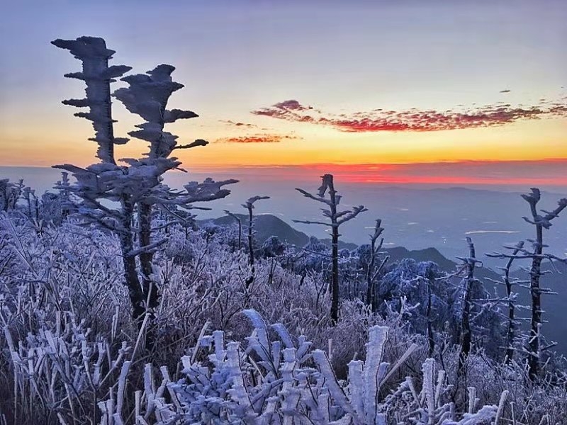 山中层峦叠嶂、清泉潺流、洞穴四布、怪石林立,素有“春夏看花海灯海,秋冬看雾海雪海”的美名。冬日站在山顶向四周望去,银装素裹的冰雪世界一览无余,晶莹的雪淞与漂浮在群山之间的云雾相映成趣,宛若仙境。连绵的山峦和茂密的原始森林被洁白的雪花披上了一层银装,在阳光的照耀下,落在山间、树枝的冰花晶莹剔透、美不胜收,让你在江南之地也能领略北国风情。