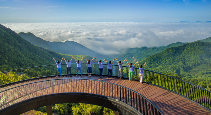 海拔818米的莲花观景台位于金华山西南山麓,依山襟野,视角开阔,是仰望星空、眺望远方的最佳观赏地。立身观景台,近鉴玄水圣石,远收百里风韵。