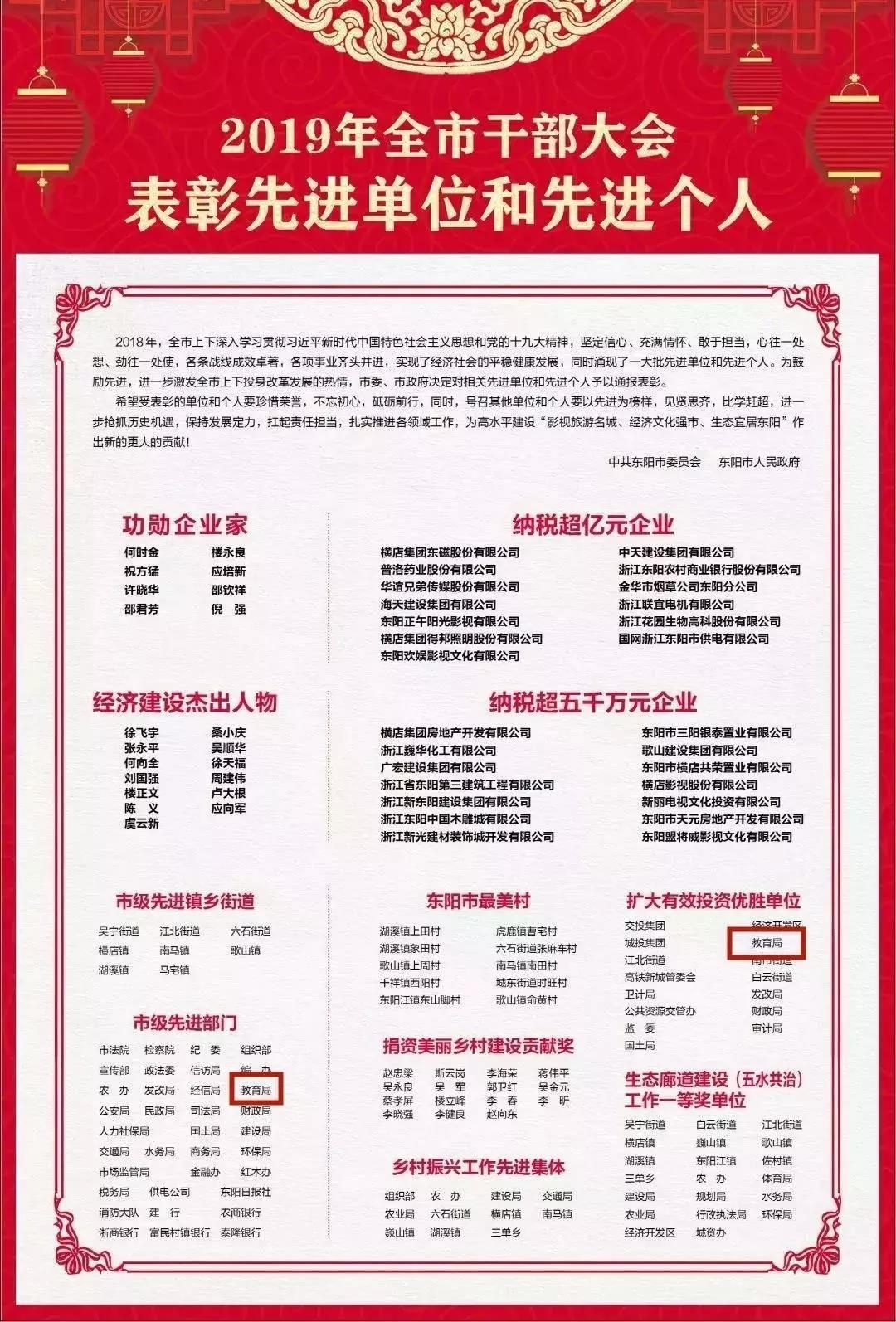 晒一晒东阳教育2019年“成绩单”