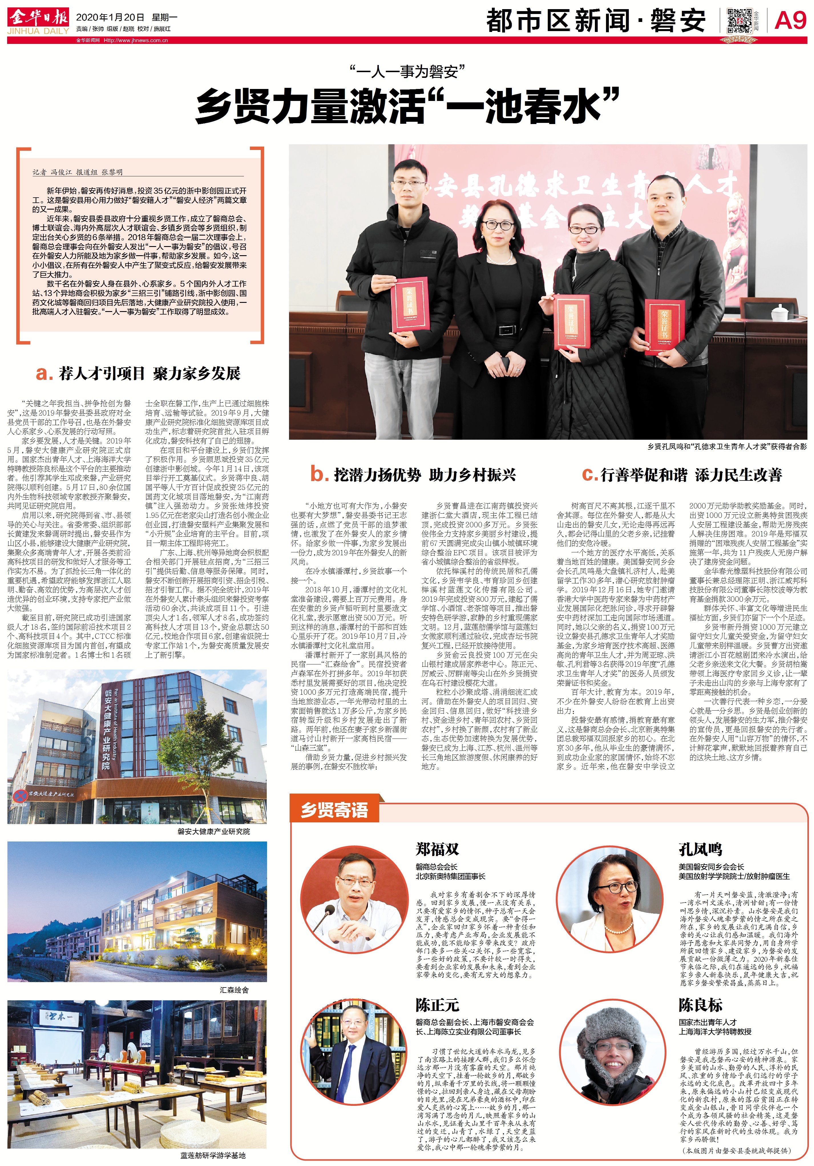 “关键之年我担当、拼争抢创为磐安”,这是2019年磐安县委县政府对全县党员干部的工作号召,也是在外磐安人心系家乡、心系发展的行动写照。