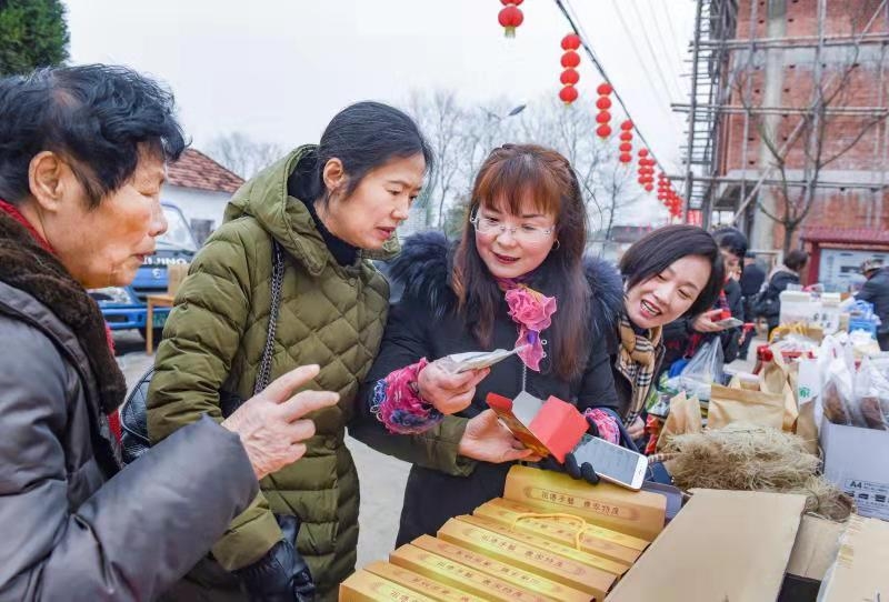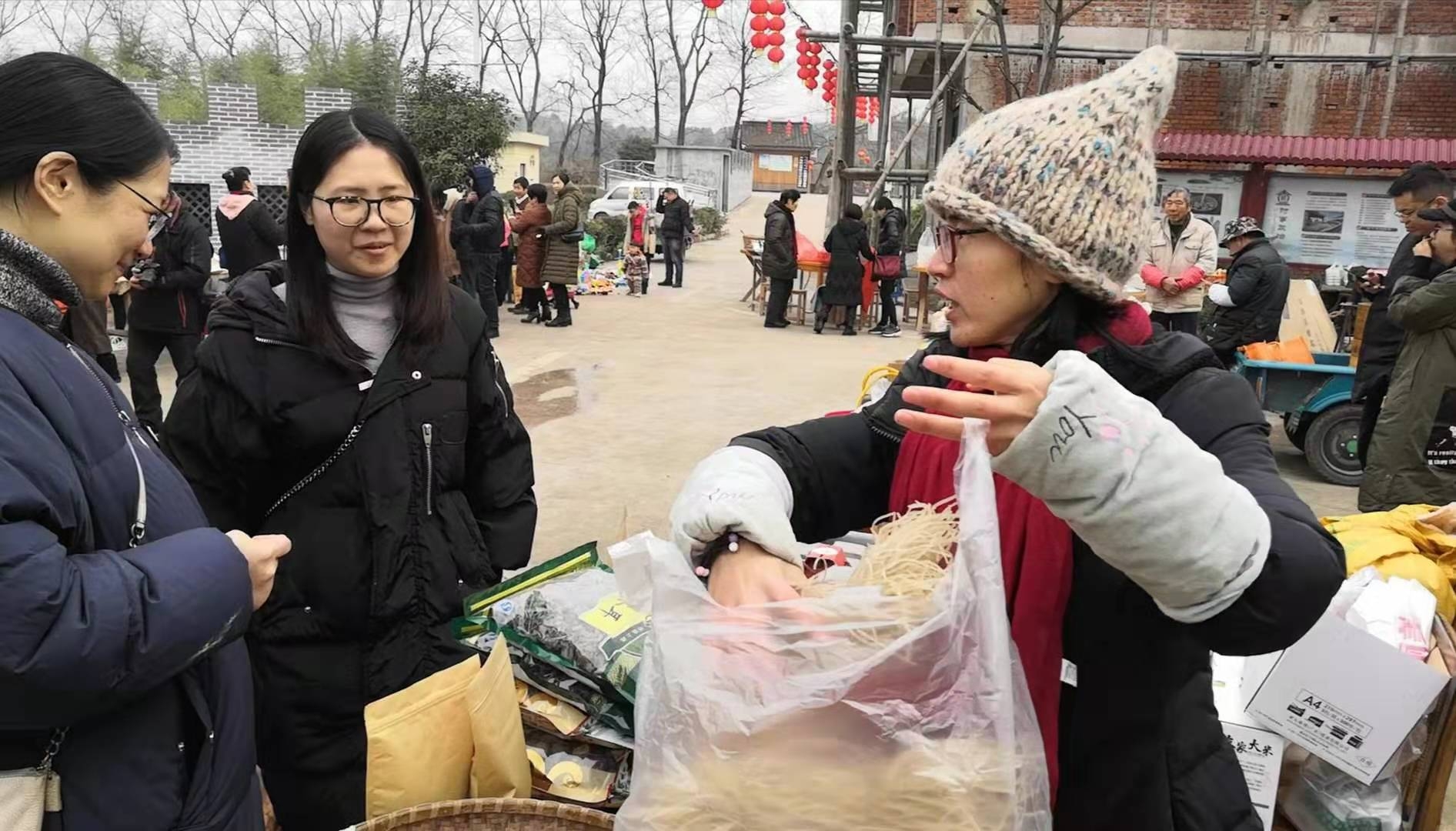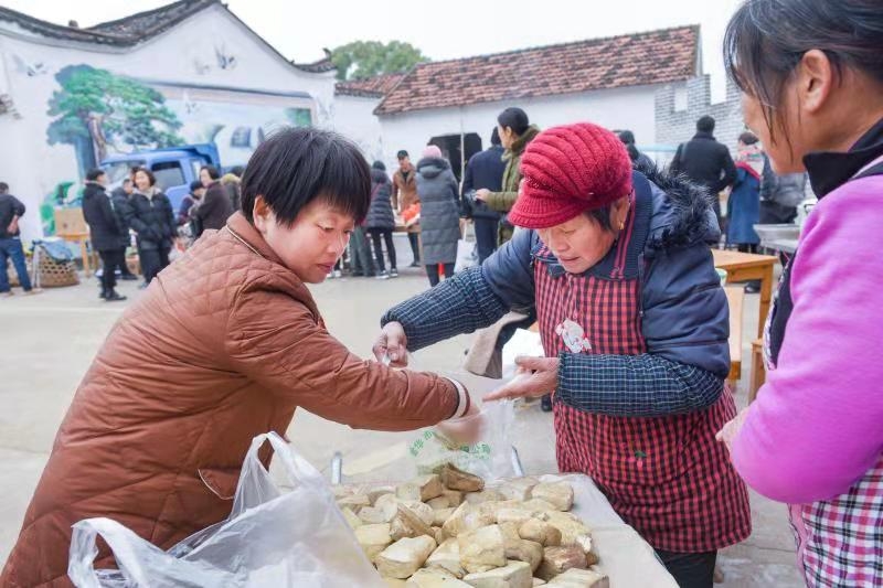 除了手工制作的小吃,各种自产自销的农副产品也颇受欢迎。来自金华市区的梁女士参加了去年的年货节,感觉很好,今年她和老同学又组团来越溪白鹤村游玩,顺便在年货节上“扫货”。梁女士说,与去年年货节相比,今年的规模较小,年货种类也不如之前丰富,不过所幸这些手工艺农副产品还在,她很满意。