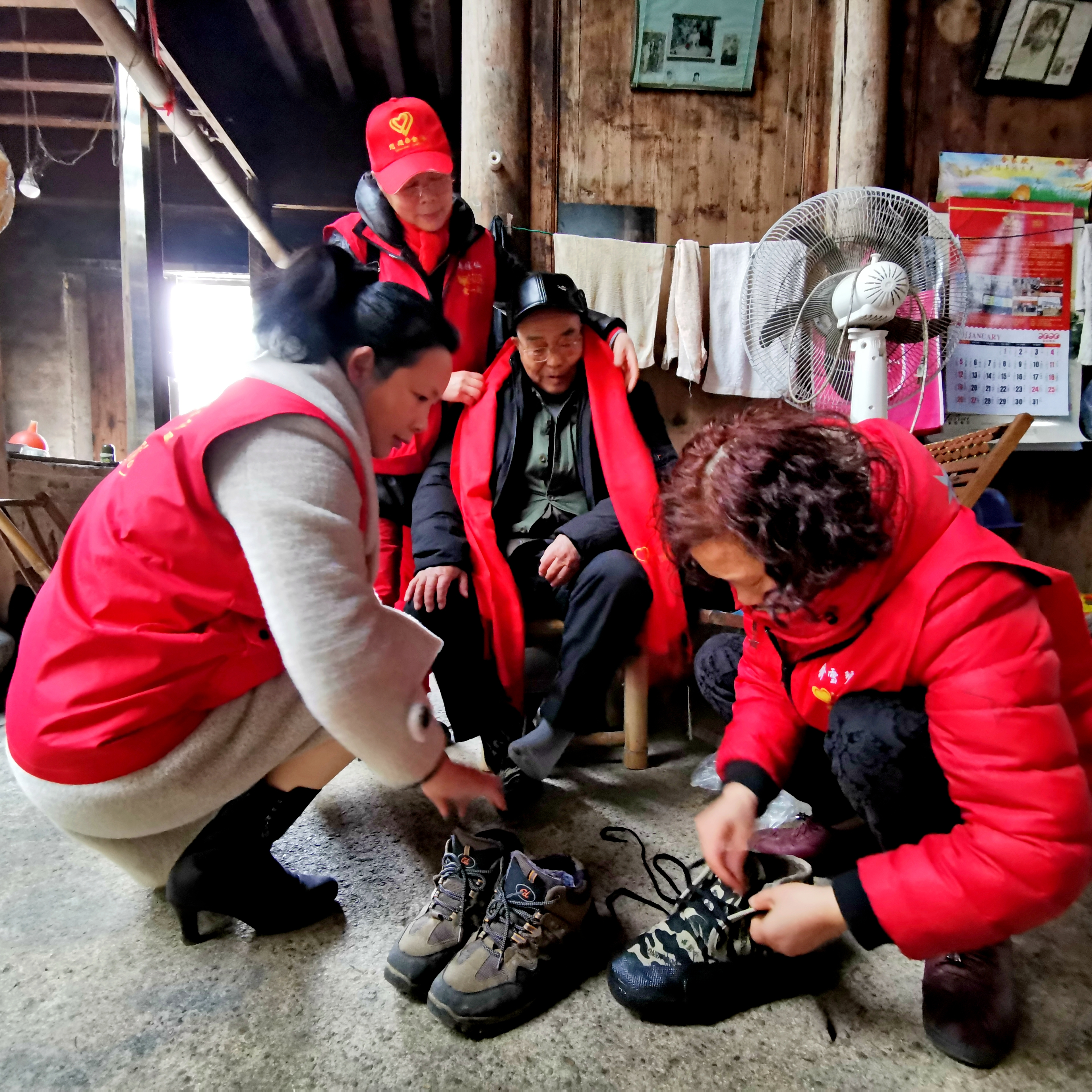 “爷爷,您试试棉鞋合不合脚,暖和吗?”1月19日下午,金华市爱一起公益协会负责人金巧花来到汤溪镇中戴村戴樟兴家中,给他送去了棉衣、棉鞋、围巾等一些日常用品。