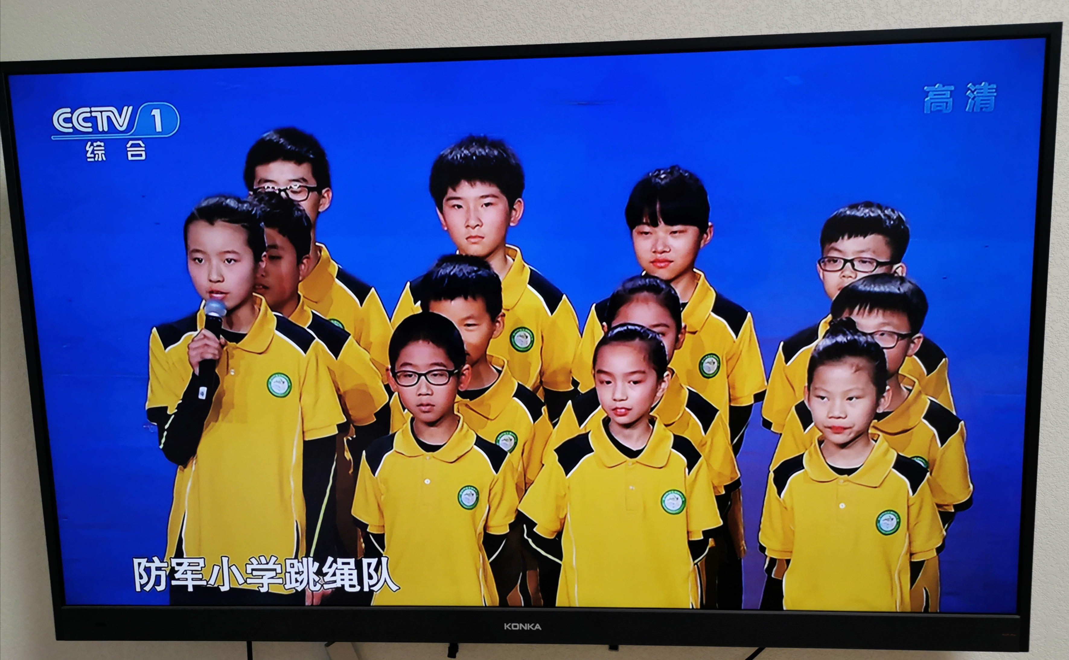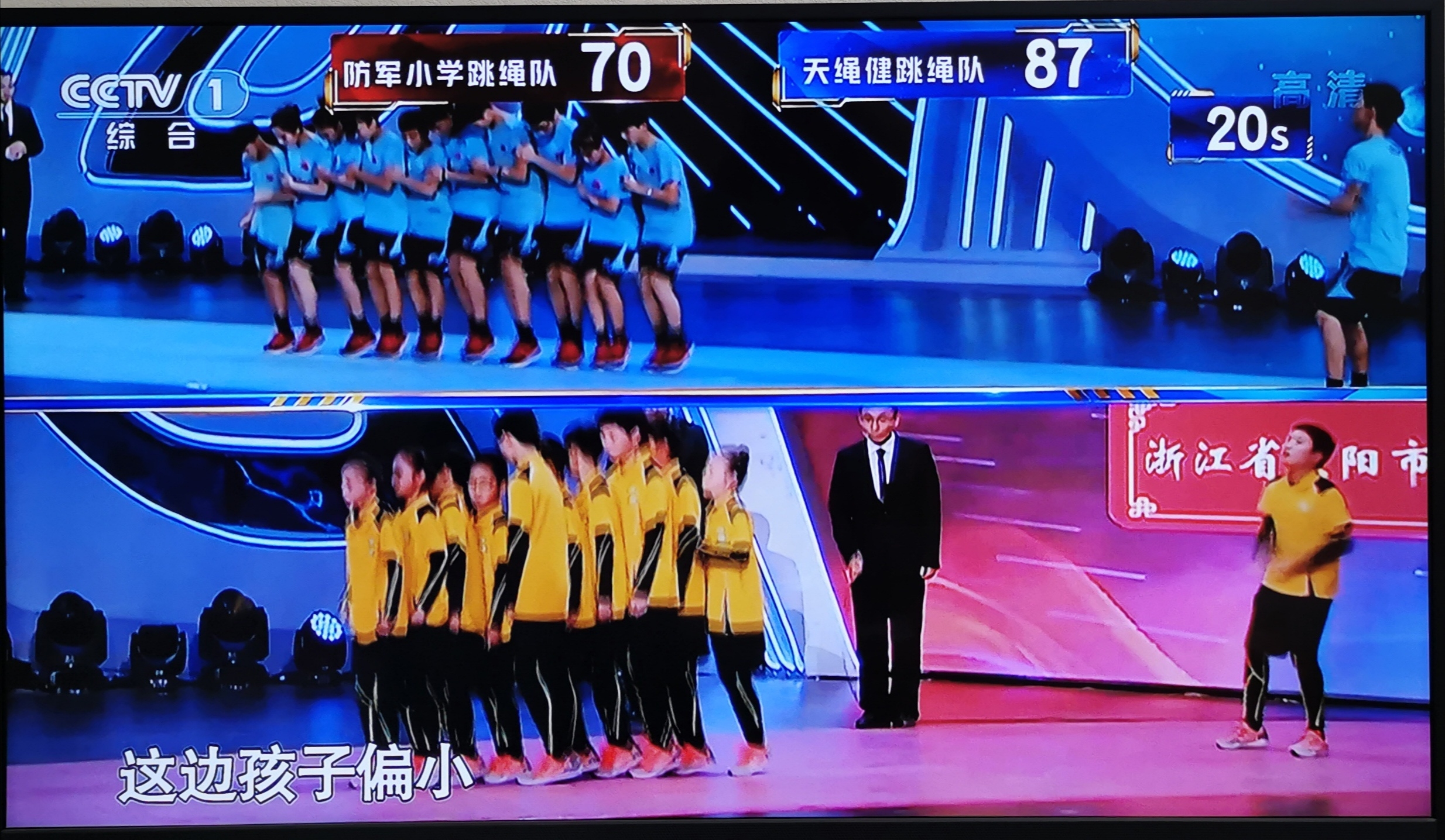 去年12月30日,防军小学学生受邀抵达北京,参与录制中央电视台《挑战不可能新春盛典》节目,挑战“10人一组一分钟跳绳次数最多”。共有4支队伍参加跳绳项目,另外3支分别来自山东淄博和广东广州,均由初中生组成,而且都是专业跳绳队。