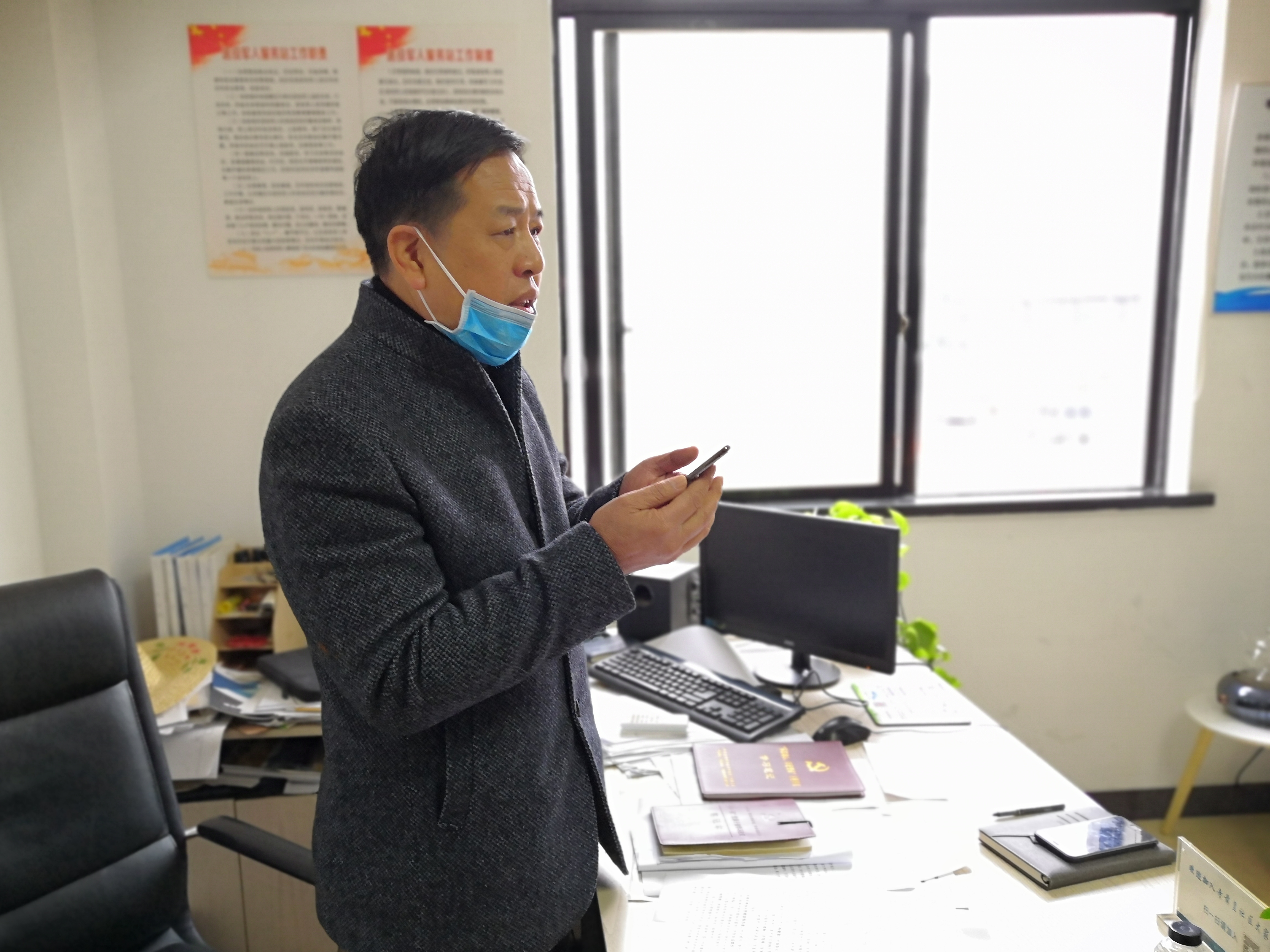 随后他又赶回社区,参加金华开发区召开的新型冠状病毒感染的肺炎疫情防控工作视频会议,汇报社区防护工作进展情况。会议结束后,在接受采访间隙,他又给早上一名反映情况的居民回了个电话,告知他社区已对他反映的一名疑似人员进行查证,情况良好。