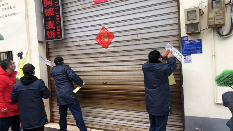 1月28日,寺前皇丹南街一饼店经营户在居家隔离期间试图开门营业,社区工作人员通过监控发现后立即前往劝导。在教育劝导无效后,社区将情况报告给街道。根据之前制定的预案,街道指挥部下达指令,联合市场监管部门对该饼店进行查封处理。“疫情就是战情,人的生命高于一切,不敢有丝毫懈怠和麻痹思想。”为此,街道组织人员对辖区公共场所进行全方位消毒,并结合消毒工作开展沿街宣传,不断提升辖区居民的防护意识。