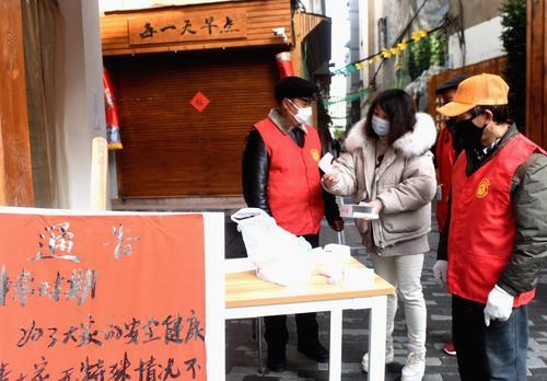1月29日,市区江南街道高畈社区工作人员把非接触式红外体温仪,分发给在汪家店各个路口值守的党员志愿者。工作人员介绍,汪家店属于城中村,春节过后外来流动人口将陆续返回,在进入之前都要测量体温,并由志愿者做好登记工作。