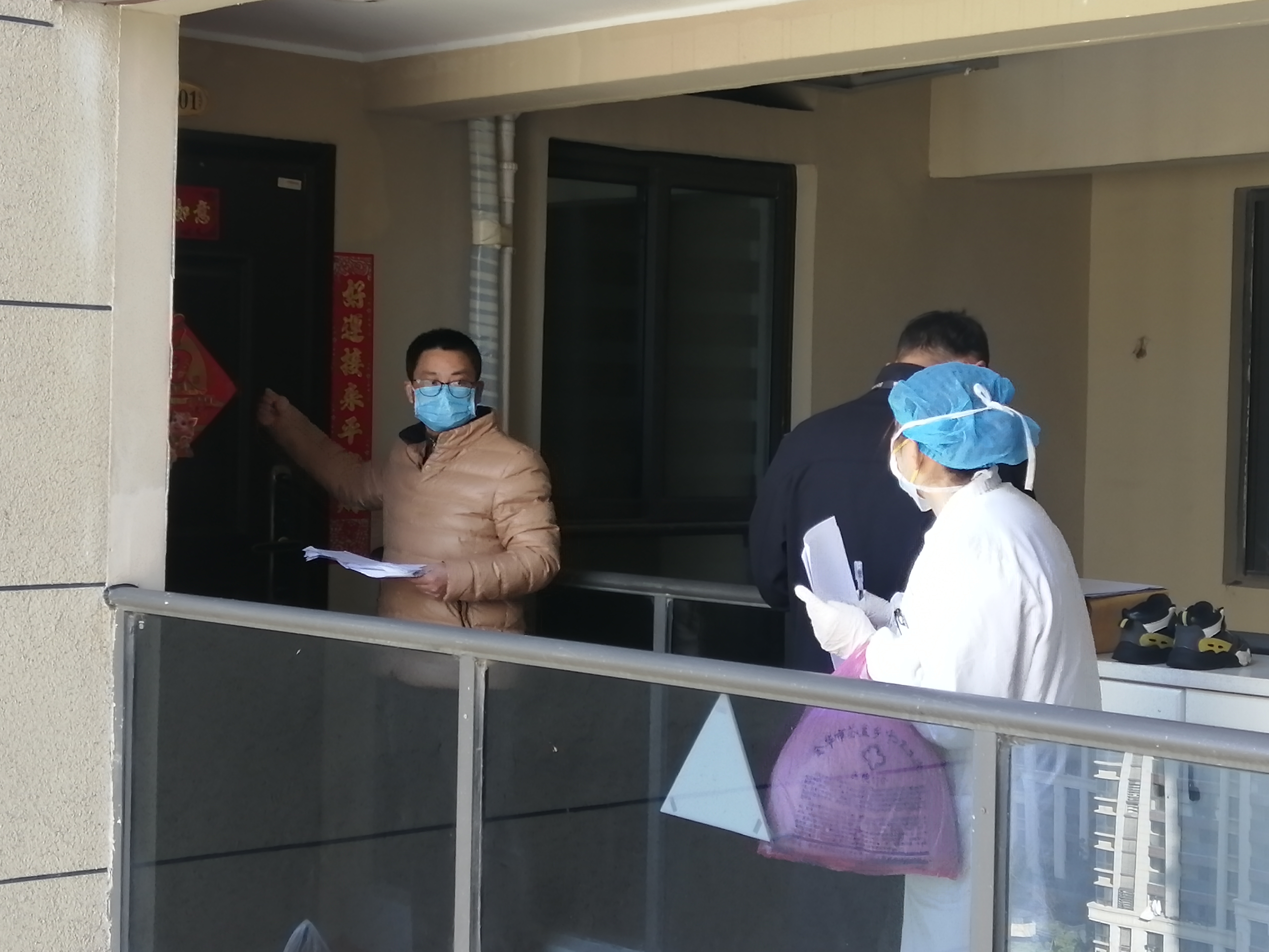 潘益民第一时间组织社区“红色物业联盟”成员单位开会,传达省、市、区各级会议精神,要求每个物业都要做好出入人员登记、量体温等日常工作,全面发动物业公司参与湖北来金人员以及与确诊病例密切接触人员的排查工作。针对排查出来需要居家隔离观察的人员,湖海塘社区又成立了一支由乡干部、社区工作人员、医护人员、派出所民警、物业人员组成的专班队伍,每天定期上门测体温、消毒等。