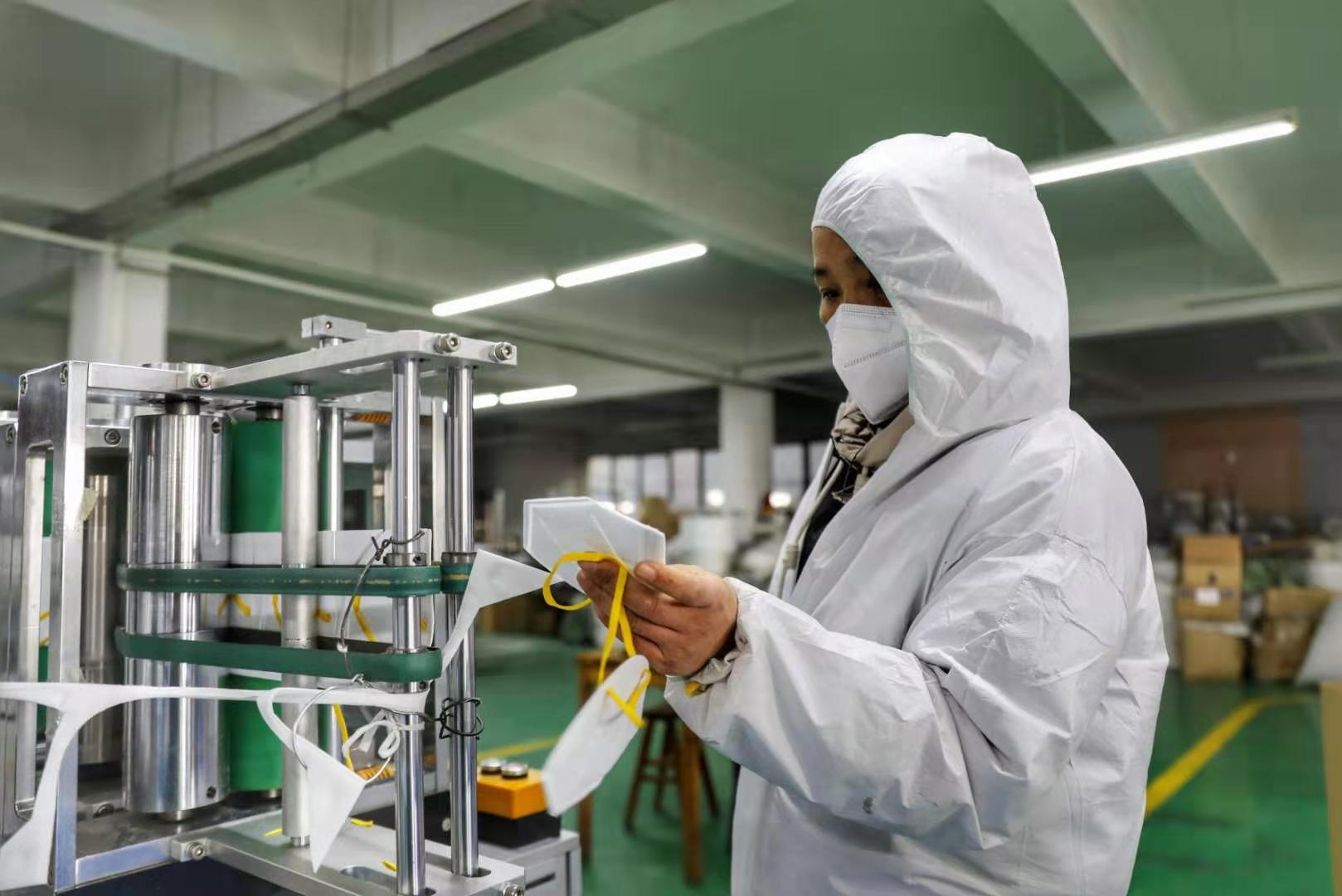 2月1日傍晚5点30分,位于金华开发区汤溪镇的金创劳动防护工具厂生产车间内,一群身着全包式消毒工作服的工人正紧张地忙碌着,他们放弃休假,提前回厂上班,一只只KN95型口罩不断从两条生产线“诞生”。“恢复生产不是为了赚钱,而是要履行社会责任。”工厂负责人金勇平说,多生产一只口罩,就能为打赢疫情防控阻击战多贡献一份力量。