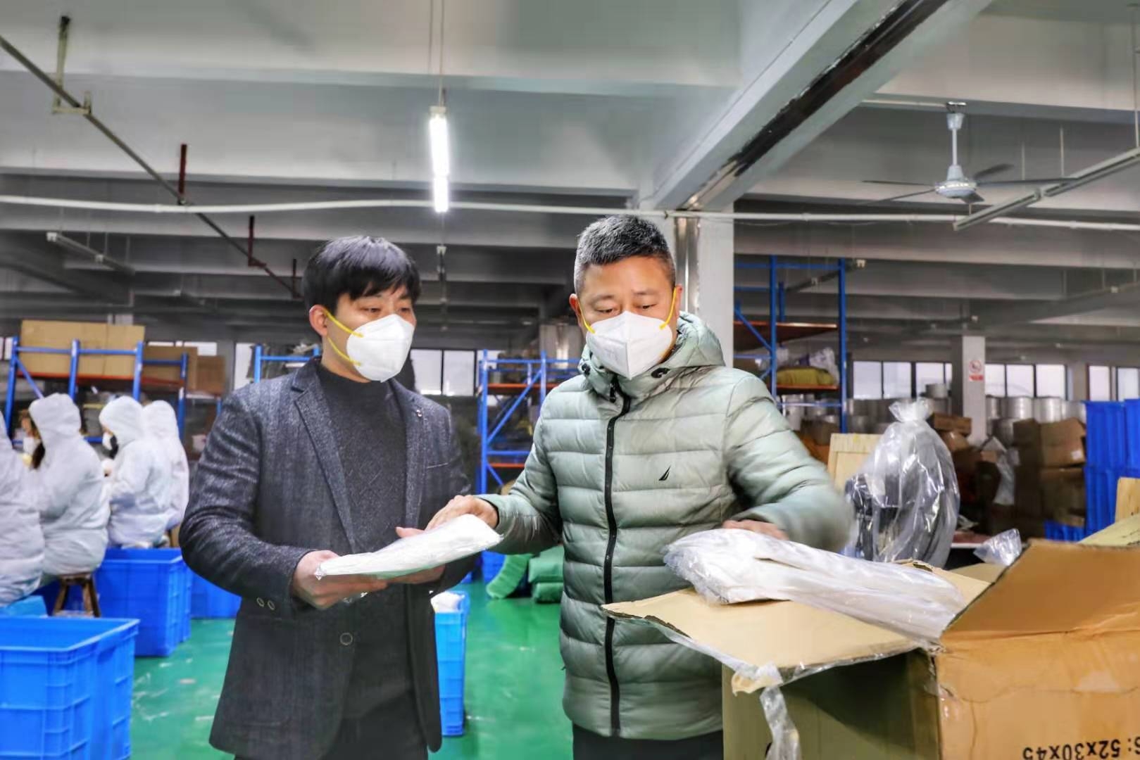 记者当天见到金勇平时,他眼里布满血丝,却精神十足。大年三十晚上,老金看到春晚中关于新型冠状病毒感染的肺炎疫情的节目,得知防控疫情的相关医疗物资紧缺,连忙关上电视,回到厂里,调试机器,着手准备大年初一复工生产口罩。大年初一一早,老金给本地骨干员工打去电话,大家都不讲任何条件同意恢复生产,纷纷表示要为加强物资供应贡献自己的力量。