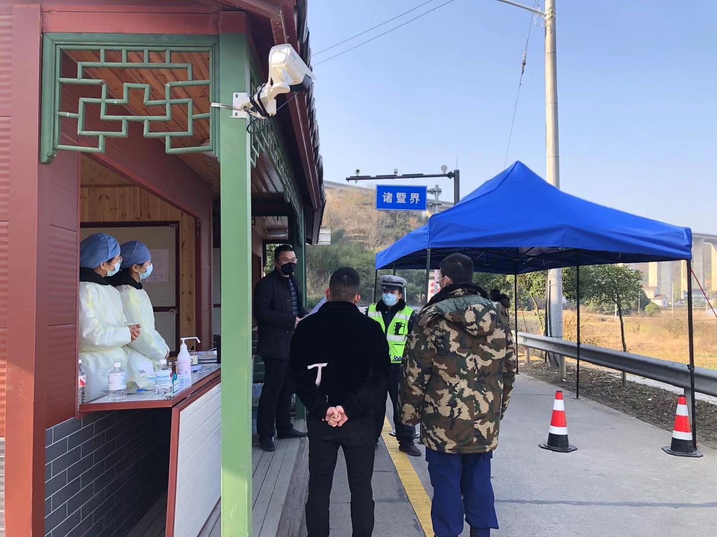 巍山镇根据东阳市级部门要求,自1月26日起在诸暨-学典交界、怀鲁高速出口两处设立交通卡点,由镇干部、公安、交通、卫健四队人员共同开启了“白+黑”工作模式,四班三运转,24小时不间断扼守关卡。