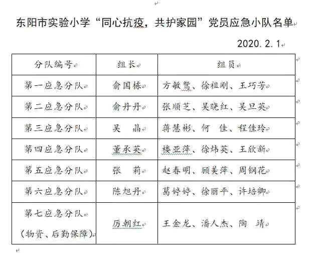 1月31日学校党支部发出了成立“应急小分队”的号召,一线党员老师热情高涨,踊跃报名,不到一小时,自告奋勇报名人数已达20余人,实验小学党员应急小队“火线”成立。还有被“隔离”党员老师发来微信,虽身被隔离,但心与组织在一起。部分党员身患小疾,坚决恳请组织统一参加应急防控。徐丽平老师虽因支教原因,党组织关系暂时转离,得知此讯后,依然积极“请战”加入应急小队,不怕苦不怕累,为打赢这场疫情战役贡献自己的力量。“党有号召,实小有行动”,党员应急小分队时刻准备着。