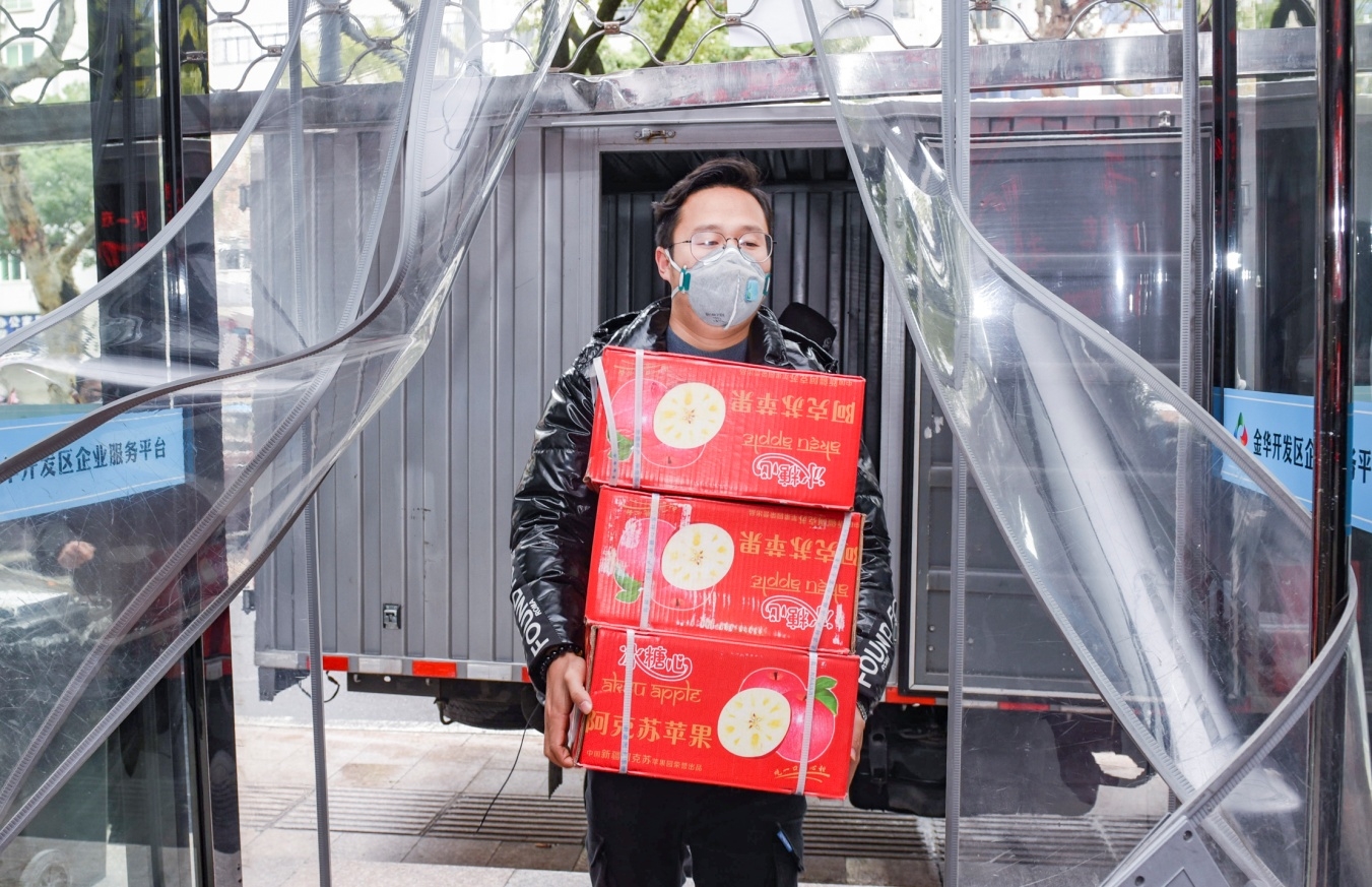 2月7日下午,一辆小型货车稳稳地停在开发区大楼西侧。打开车门,只见苹果、牛奶、饼干等物资塞满了整个车厢,卸下一数,一共120件。这些都是水果店个体户邹志波捐给开发区防疫一线工作人员的。他说:“一线的工作人员很辛苦,希望这批物资能够给他们补充一点营养,有了好的身体才能更好地抗击疫情。”