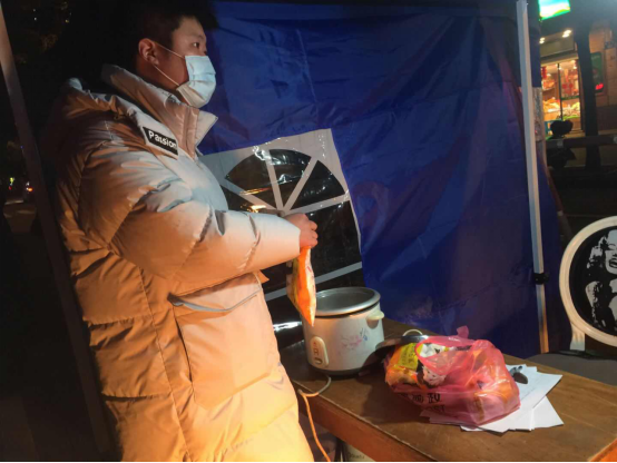 中村社区干部将汤圆、锅具带到各卡口点位现场烧煮。刚出锅的汤圆总是更加美味。