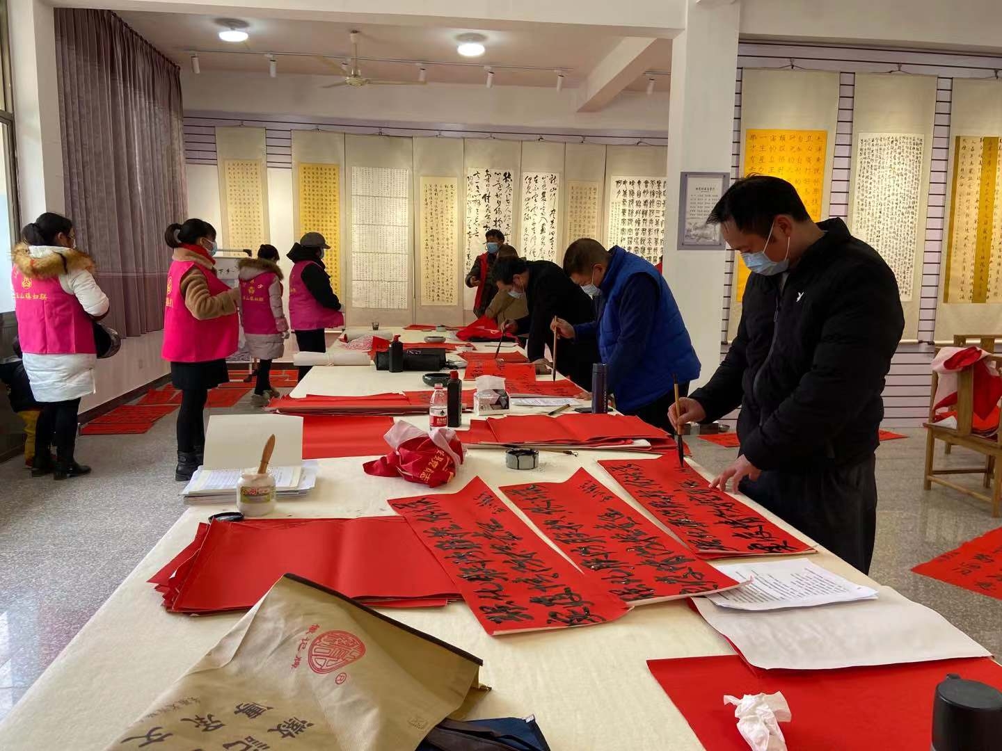 书法工作者书写防控宣传标语