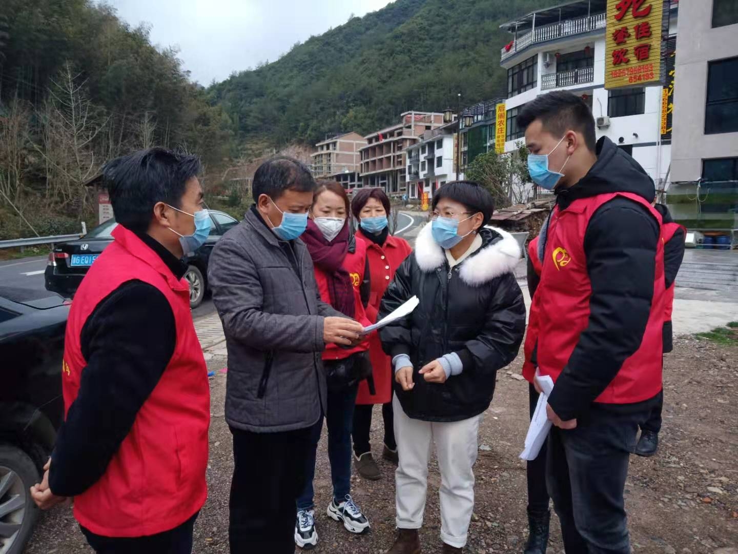 网格化管理还延伸到新设的各个卡点。磐安是山区县,与周边六个县市接壤,全县共设立了台口、冷水、方前、盘峰等9个县级卡点,这些卡点全在农村。每个卡点上悬挂有党旗,每个工作人员佩戴党徽上岗,同时成立了临时党支部,明确了每个党员的工作职责,按照“不漏一车、不漏一人”的要求,24小时严格值守,充分发挥党员先锋模范作用,筑起了一道道“红色屏障”,为农民群众守好安全防线。