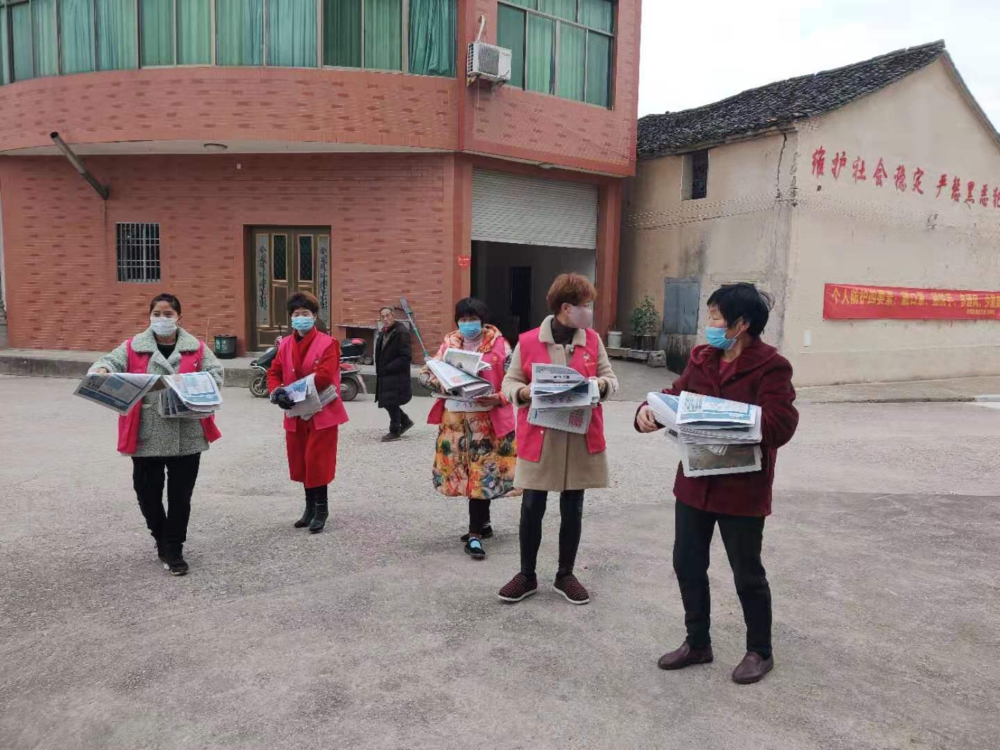 挨家挨户分发《磐安报》疫情防控专刊
