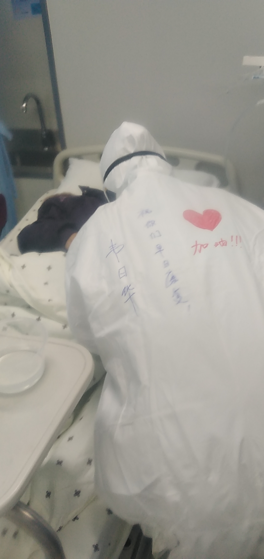 在病房里,除了有感染的风险、有病人的焦虑,同样也有病人康复的喜悦。“2020年2月2日,这个特殊的日子,我们迎来第一位出院患者,我亲自护送这位患者离开病房,她脸上洋溢着的笑容至今还记忆犹新。那一刻觉得我们的付出是值得的。”韦日华在日记中写道。