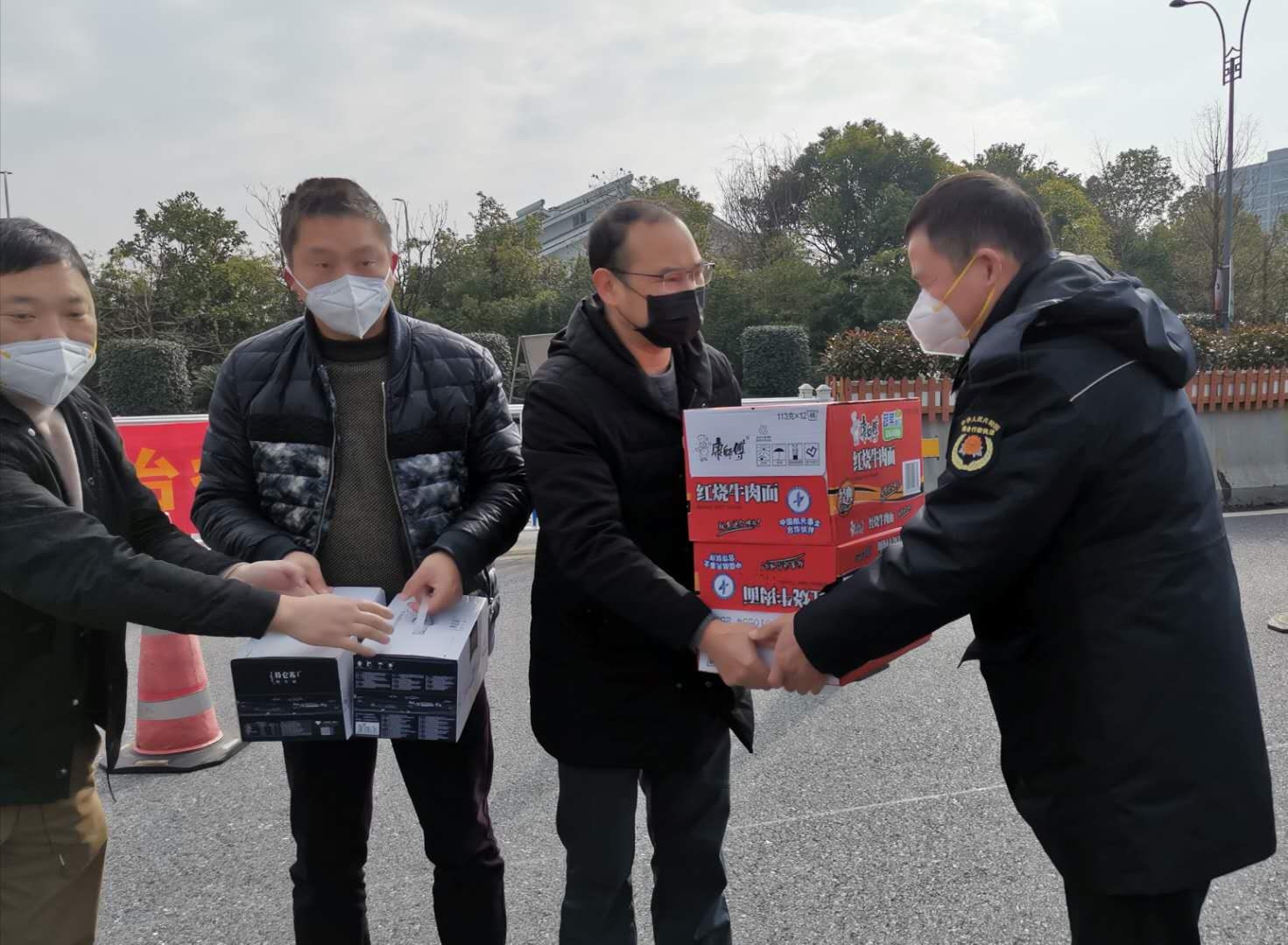 2月9日上午9时,苏孟乡党委书记何文龙带着四箱方便面和两箱牛奶,来到杭金衢高速金华出口慰问派驻在卡点的乡干部。