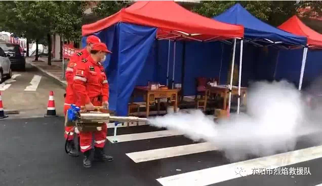 根据当前抗疫的实际,东阳市烈焰救援队也希望给群众两点提醒: 第一,疫情防控尚未真正决胜,面对部分卡口的撤离以及晴好的天气,部分群众在思想上有了波动,出门不戴口罩的也有了,想去热闹地方溜达的人也多了,这很危险。希望大家能不出门的坚持不出门,非出门不可的务必戴上口罩。 第二,现在大家都重视村(居)以及家庭环境的消杀工作,但不少人不会正确使用84消毒液、消毒酒精等,从而引发裤子遭腐蚀乃至产生火灾等情况,同样十分危险。希望广大群众从正规渠道正确学习消杀知识,以防不测的情况发生。