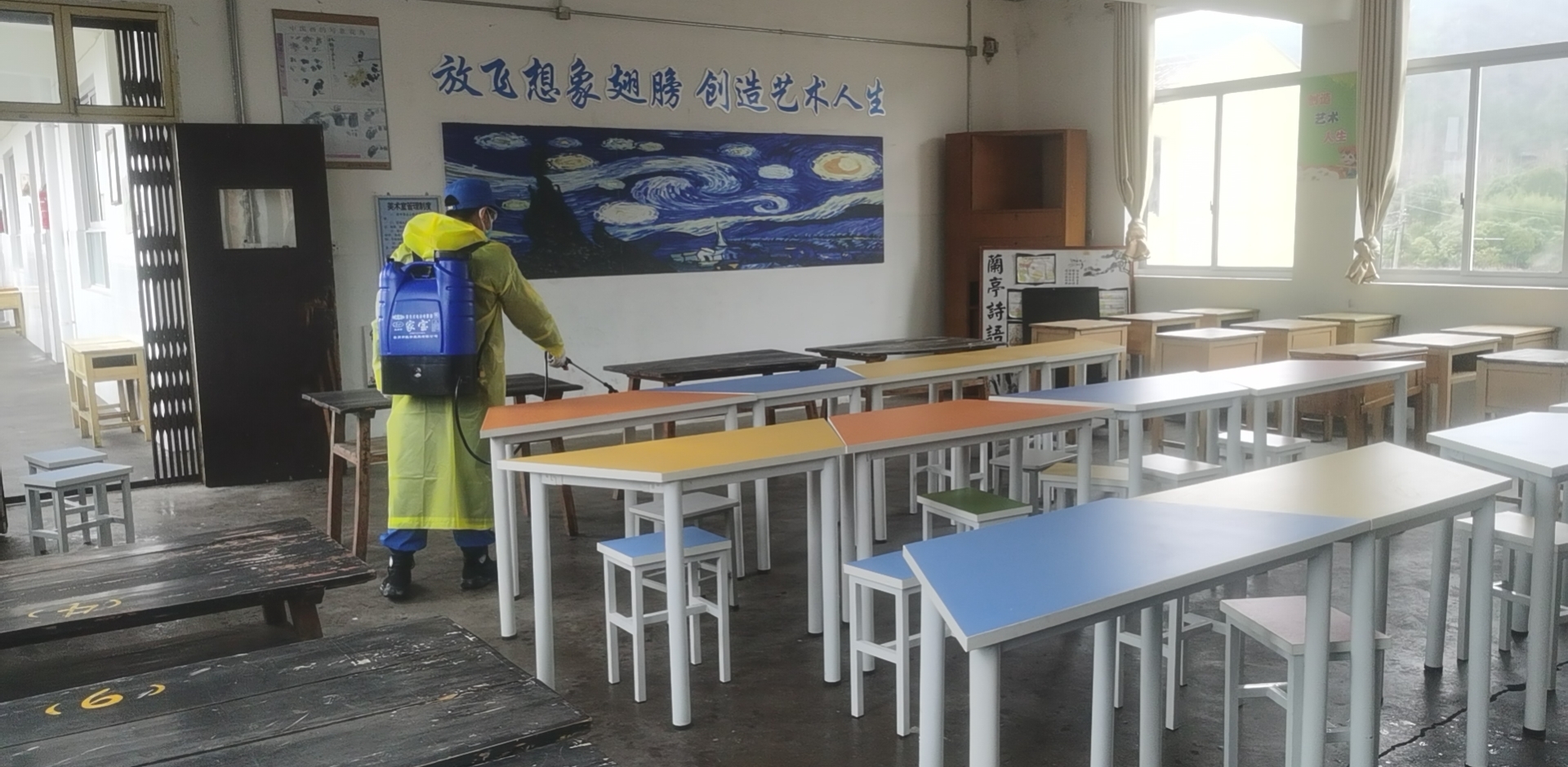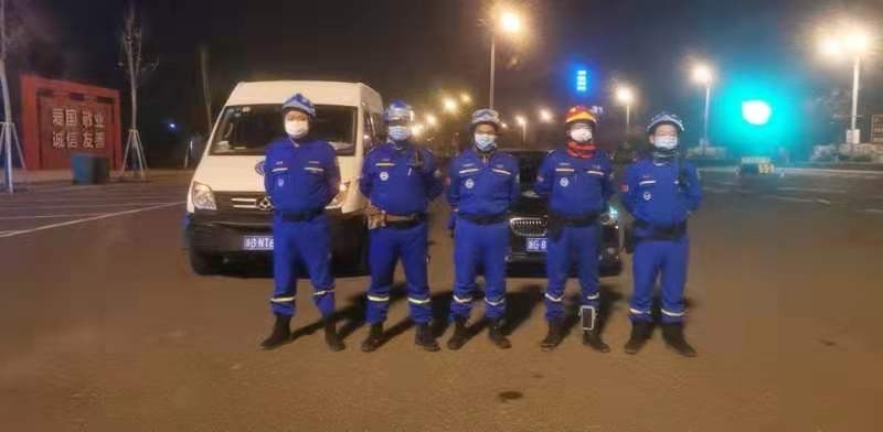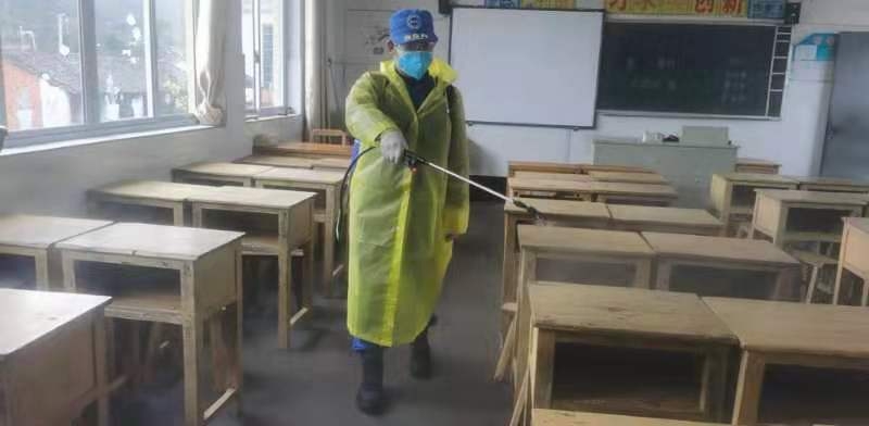 “早上出发的队友,戴好护目镜、口罩、雨衣,分工明确,速战速决,一起前往横店……。”2月13日一早,徐惠英就在蓝天救援队的群里发出一条信息,组织好队友,火速赶往横店镇屏岩办事处开始今天上午的消杀工作。