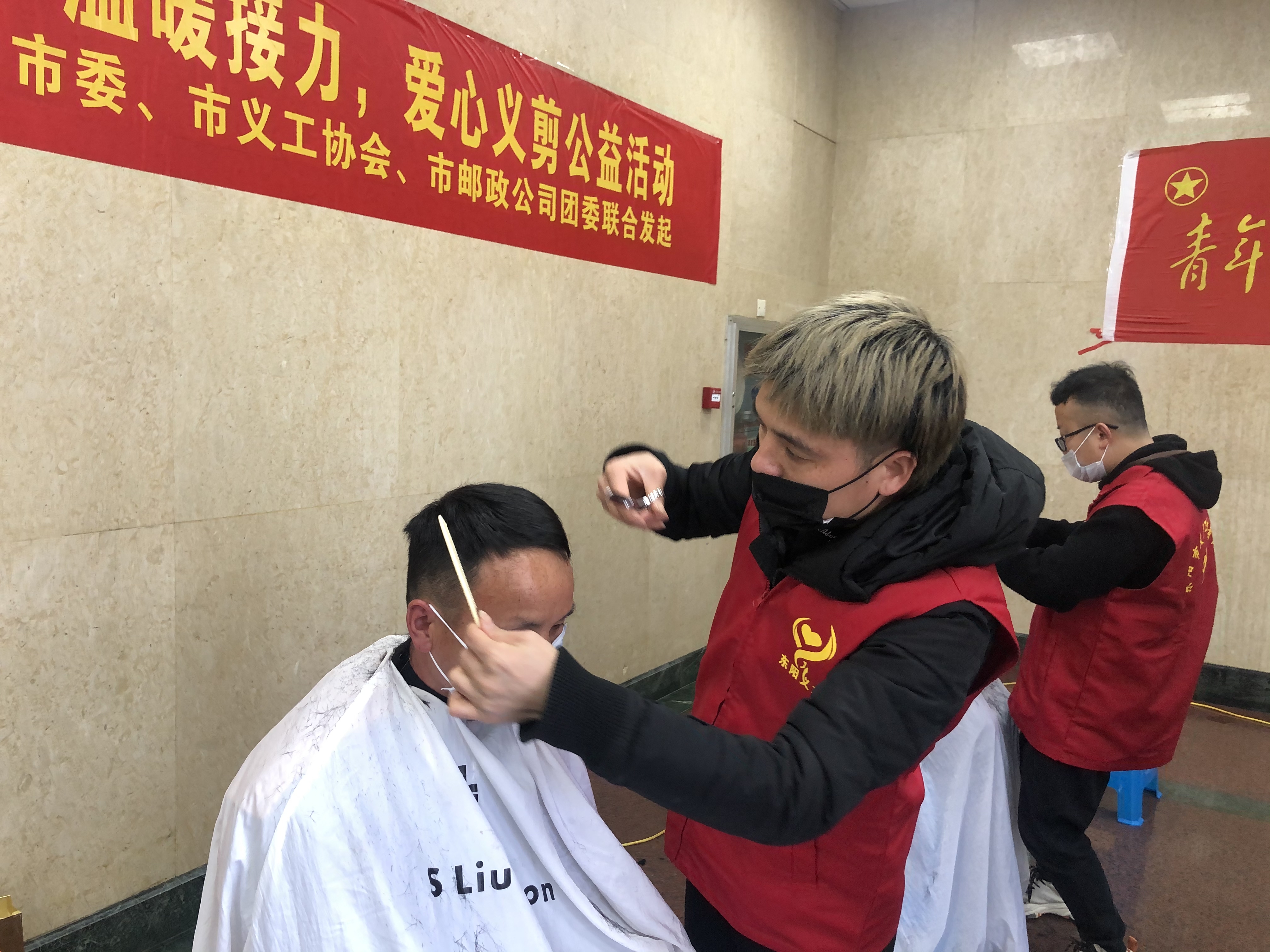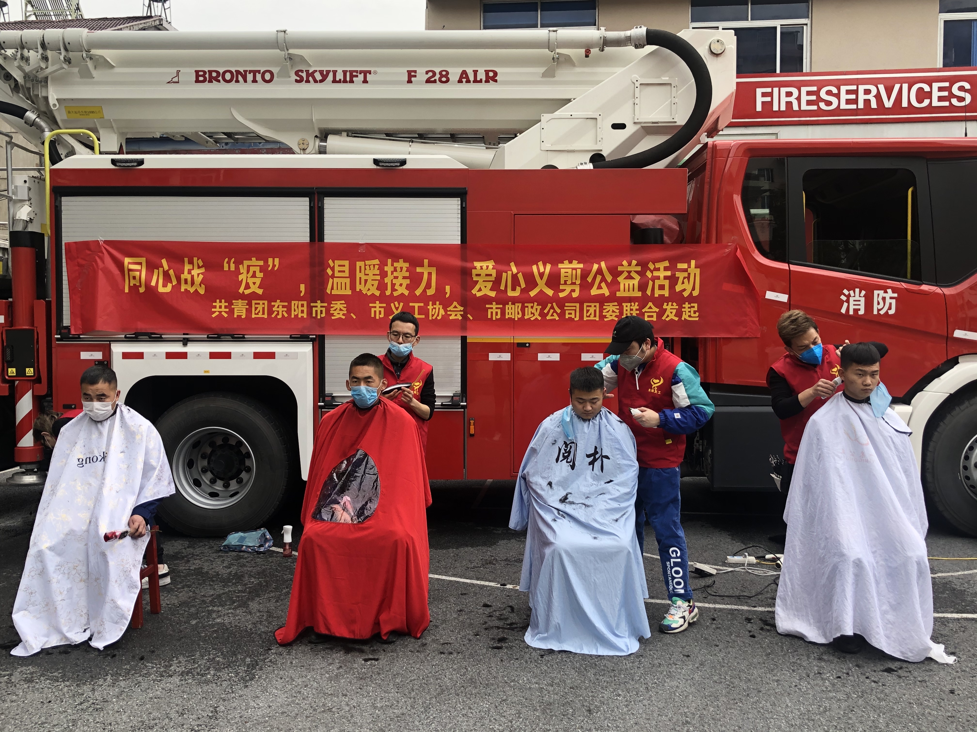 2月14日,东阳团市委联合东阳市义工协会举办“爱心义剪”公益活动,为一直奋战在疫情防控一线的东阳邮政公司员工和东阳市消防救援大队战士免费理发。