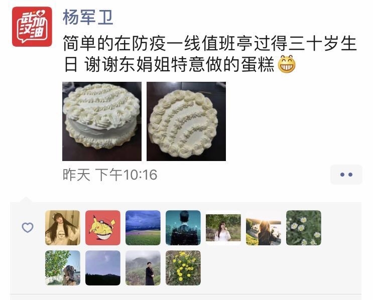 “我都忘记了今天是我的生日”在坚守疫情防控第一线上已经20几天的杨军卫傻傻地憨笑着。是的,疫情发生以来,作为村里年轻的党员,第一天他在值班室,第二天他在医学观察户家,第三天他在村巡逻一直到昨天,他依旧在代购生活必需品的路上。记不清有多少个夜晚,记不清今天星期几的他连人生中的三十岁生日也忘记了!