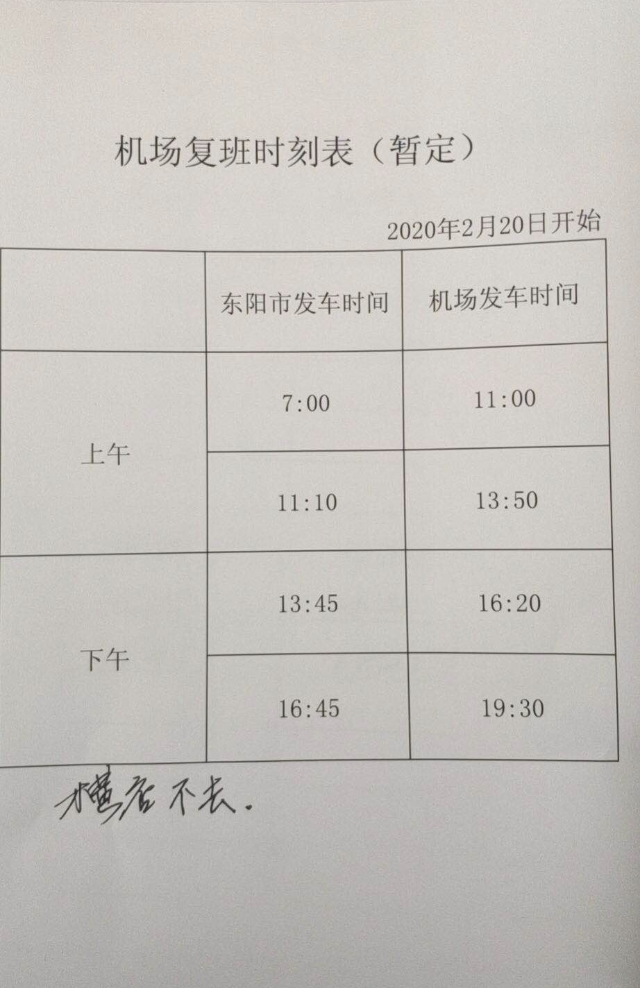 同时,2月20日开始,东阳市惠民公交公司取消免费接送专车,在公交总站发车的东阳—义乌火车站临时班线终止营运,请前往义乌火车站的乘客到汽车东站乘车。