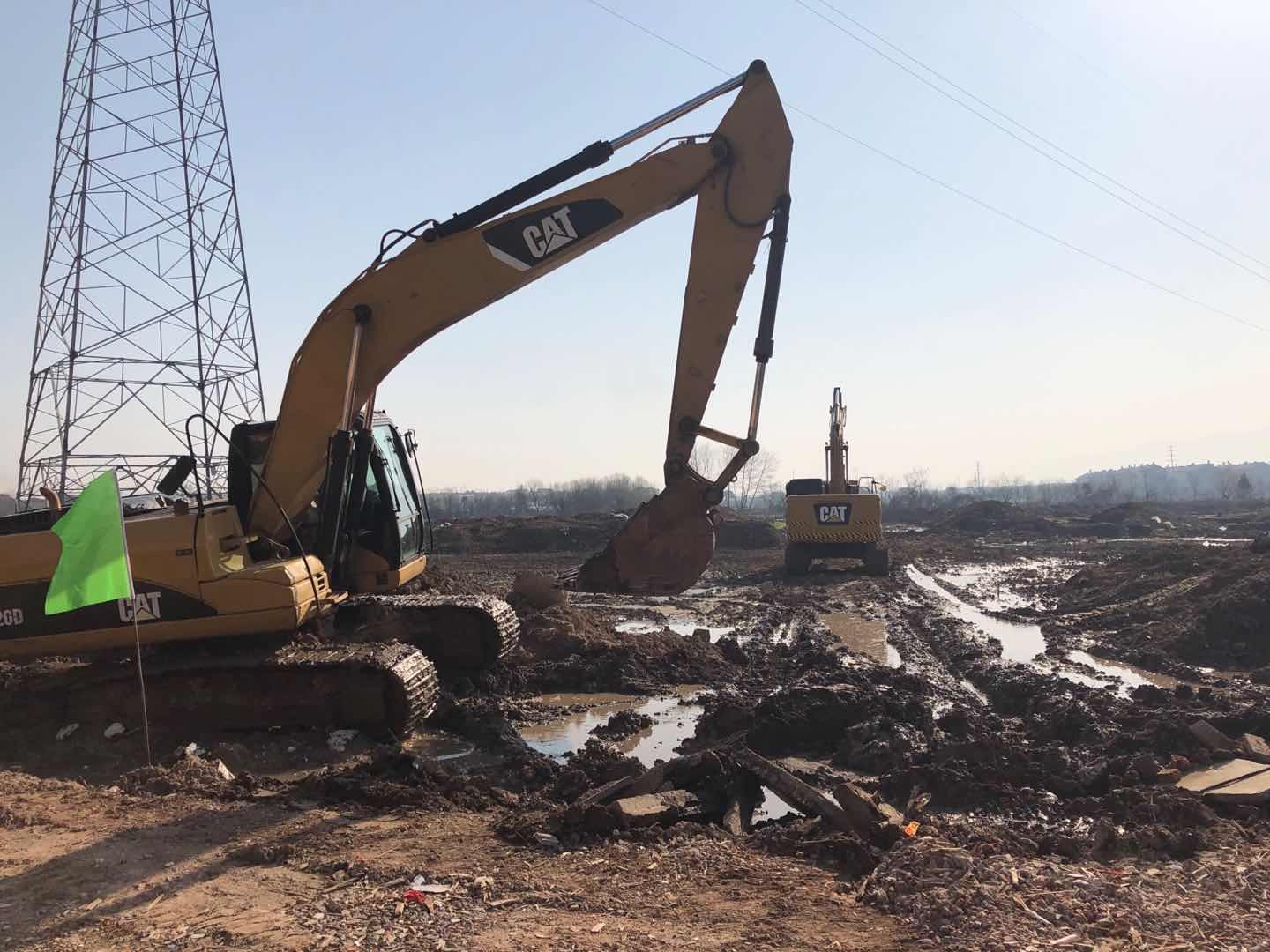 2月20日上午,东阳市江北街道甬金铁路5标工地施工现场,机声隆隆,几台挖掘机正在不同区域作业,驾驶室内的操作工人正戴着安全帽和口罩,有条不紊地操作着。