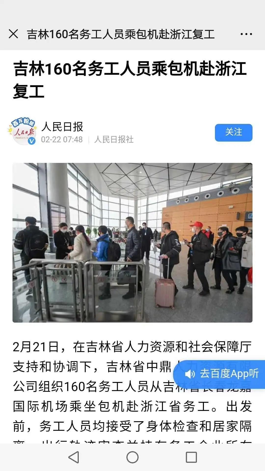 报道指出,东三省作为老牌工业基地,装备制造业发达,当地人才结构与万里扬公司的需求专业对口。此次招聘的员工,绝大部分都是有工作经验的“老手”,到岗就能用。这160人到了之后,万里扬员工到岗率达到90%左右,为公司后续的经营和生产带来极大的促进。截至目前,金华开发区采取包车包列包机等方式,接回员工3000多名,并为160多家企业发布7000多个招聘岗位,其中2000多个紧缺职位已经解决700多个。