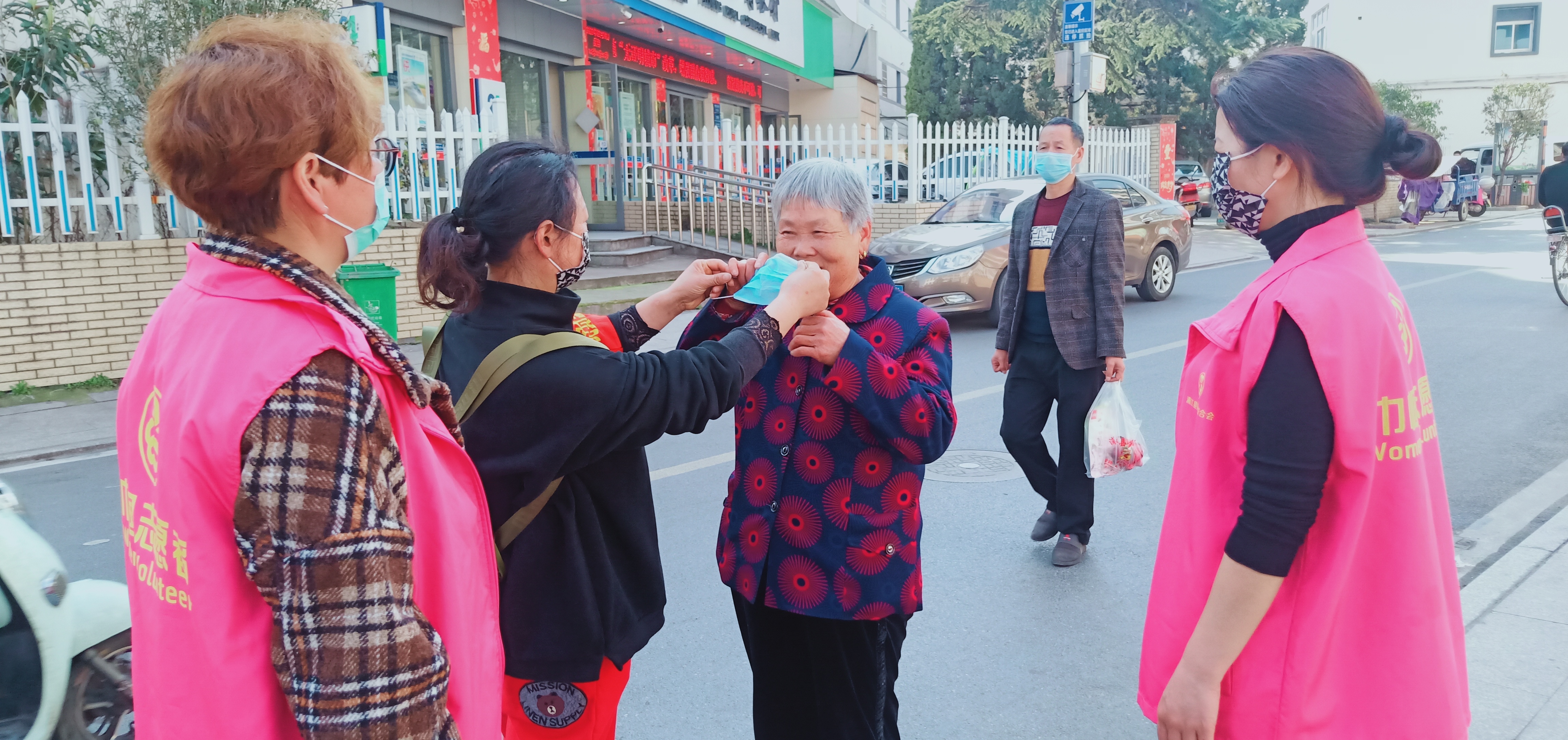 “大妈,口罩要这样戴,颜色深的一面露在外面,戴好后在鼻梁处压紧,然后往下拉开压实。”疫情发生以来,岩头陈村的丰安姊妹志愿者一一上门细心地教老人们如何正确戴口罩。在岩头镇妇联组织下,各村丰安姊妹志愿者开展“爱心大劝导”活动,劝导村民不聚众聊天,戴好口罩再出门。