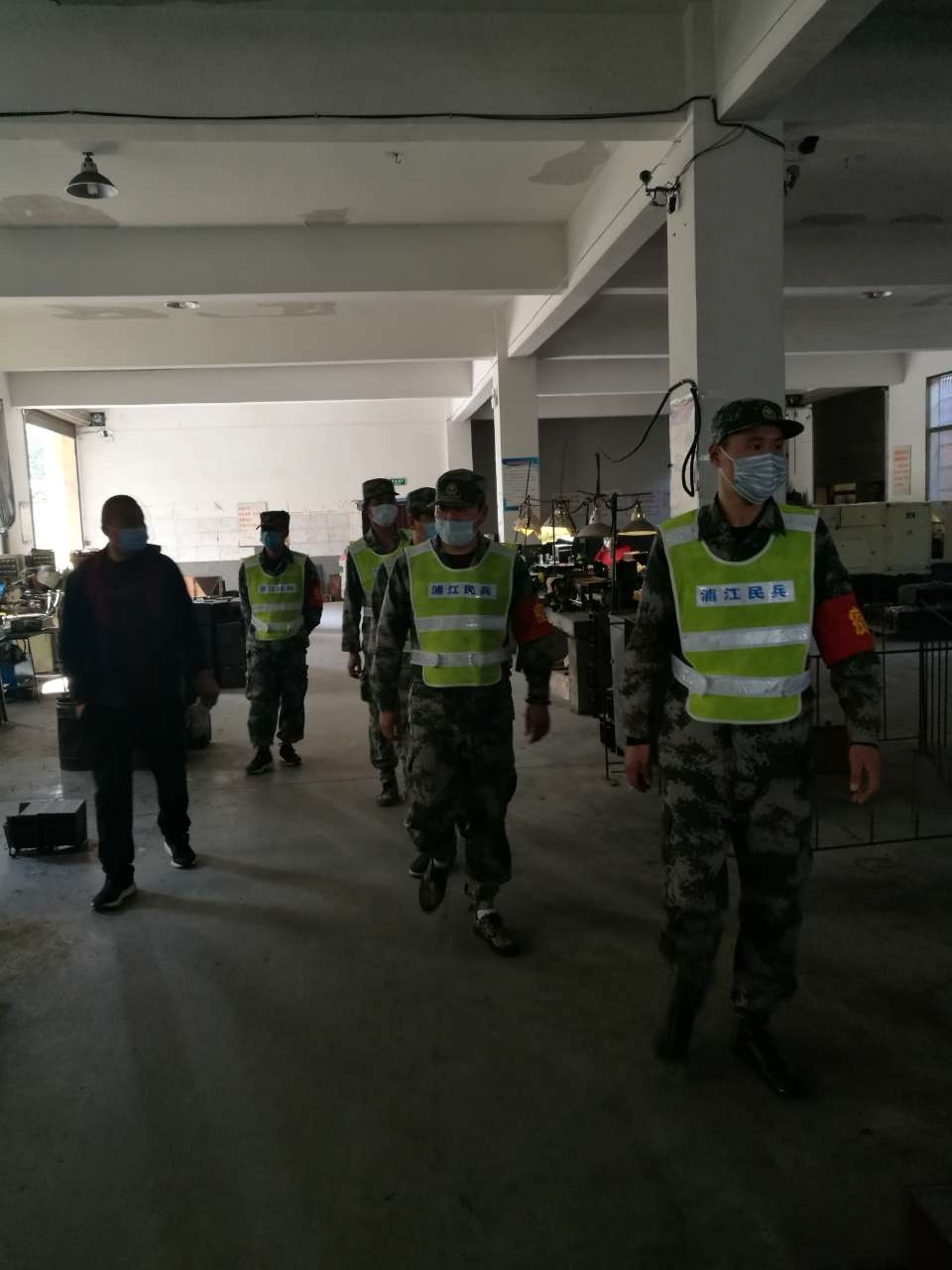 浦江县岩头镇民兵应急分队“上好膛”“架好枪”,在疫情防控、复工复产两个“战场”上把好关,站好岗,当好企业复工复产的后勤兵。