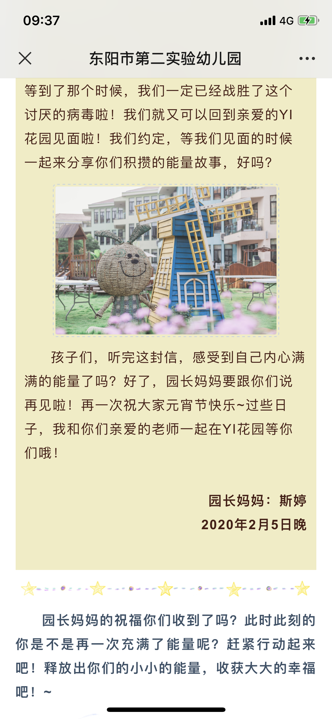 “这是一个特殊的年,也是一个特殊的假期,正是在这个特殊的时刻,园长妈妈想起了我们的能量球故事,所以就特别想给你们传递一份满满的能量,满满的能量藏在哪儿呢?就藏在这封信里,你一定能找到。”