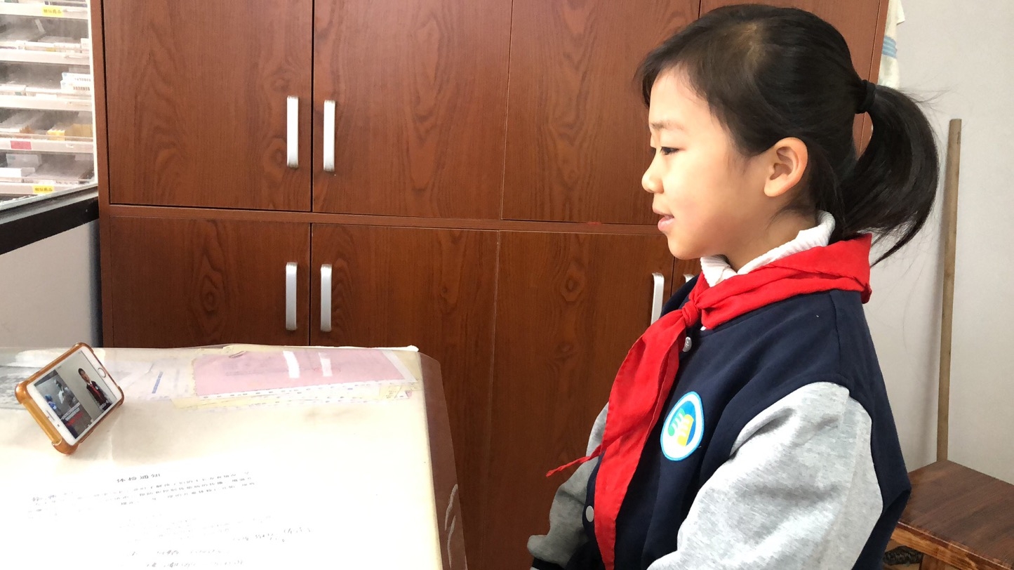 看着视频中的同班同学,五(2)班的彭金霞感叹;“由于新冠病毒疫情,我们只能在视频中隔空相见。在这场看不见硝烟的战争,我看见一个国家、一个民族为此做出的努力和付出的牺牲。我坚信,寒冷的阴霾终将会过去,温暖的春天必将到来。”