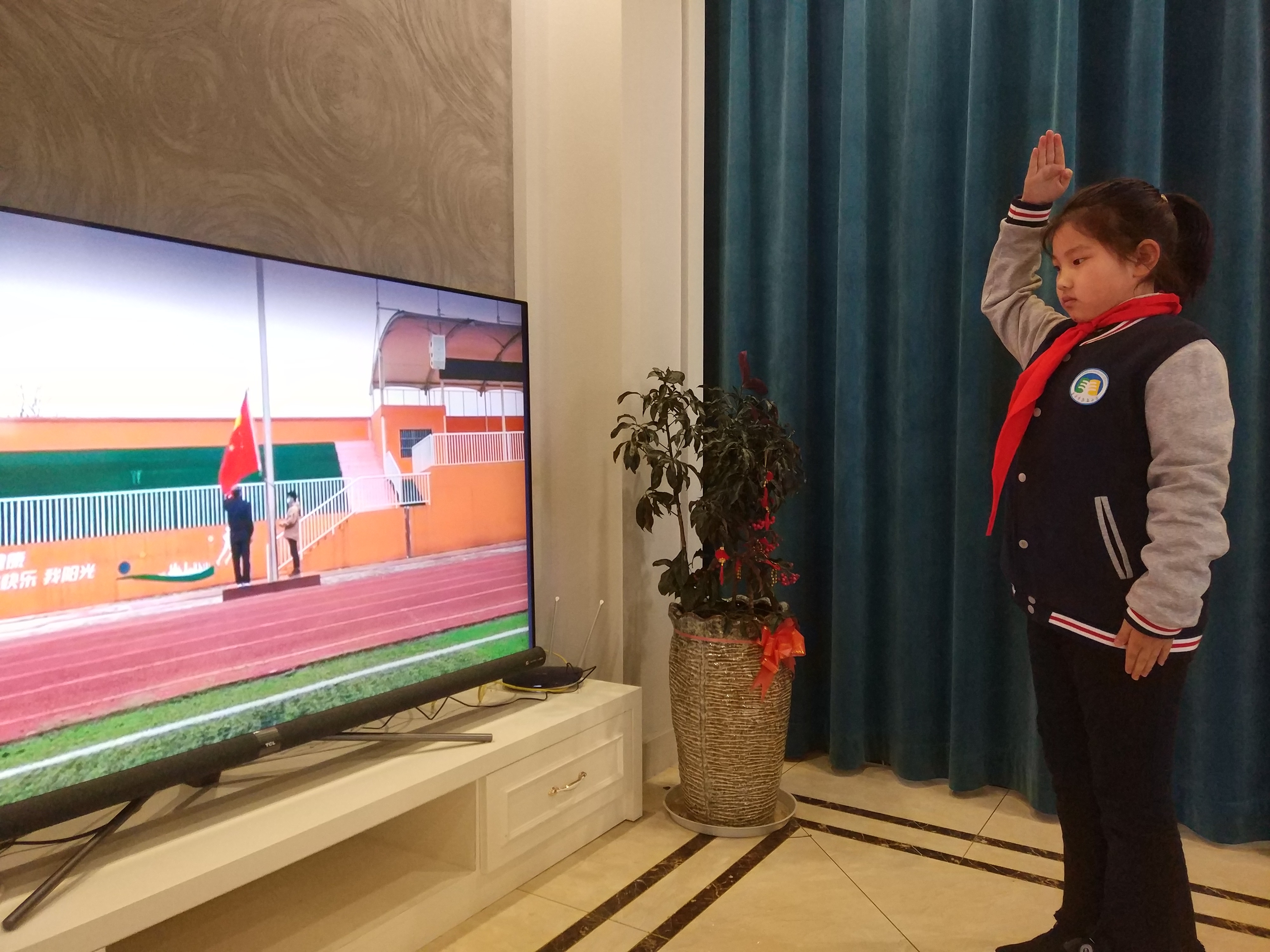 没有站立在身边的同学,没有广阔的操场,但依旧能看着冉冉升起的国旗,在心中齐唱国歌。自本周起,苏孟小学德育处开启“云端升旗”课程,每周一安排一位少年参与国旗下讲话,赞赞最美逆行者,讲讲一线感人故事,说说居家收获,传递战“疫”正能量。穿上久违的校服,带上鲜红的红领巾,隔着屏幕,敬一个标准的队礼,不少家长都红了眼眶。