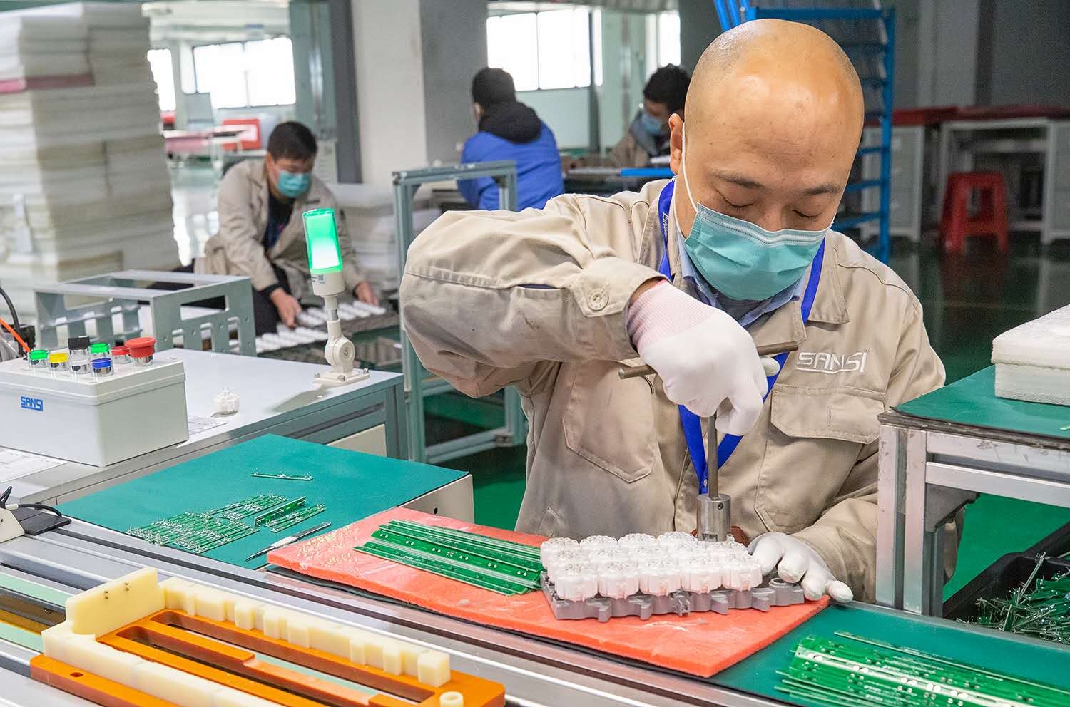 浦江县聚焦产业链短板弱项,进一步压实属地责任和企业主体责任,加强跨区域协作,补齐产业链、打通供应链,重点推进水晶、挂锁、绗缝等主导产业及配套企业复工复产。充分发挥行业协会的沟通协调作用,帮助企业逐个环节打通产业链、供应链“堵点”,全力推进产业链联动恢复正常生产。“4+2”连心服务团、基层网格员多途径提供上门帮办、跑腿代办服务,企业也竭尽全力排除用工、运输、材料、成本、产业链等各种困难积极行动,形成良好的开复工环境和氛围。