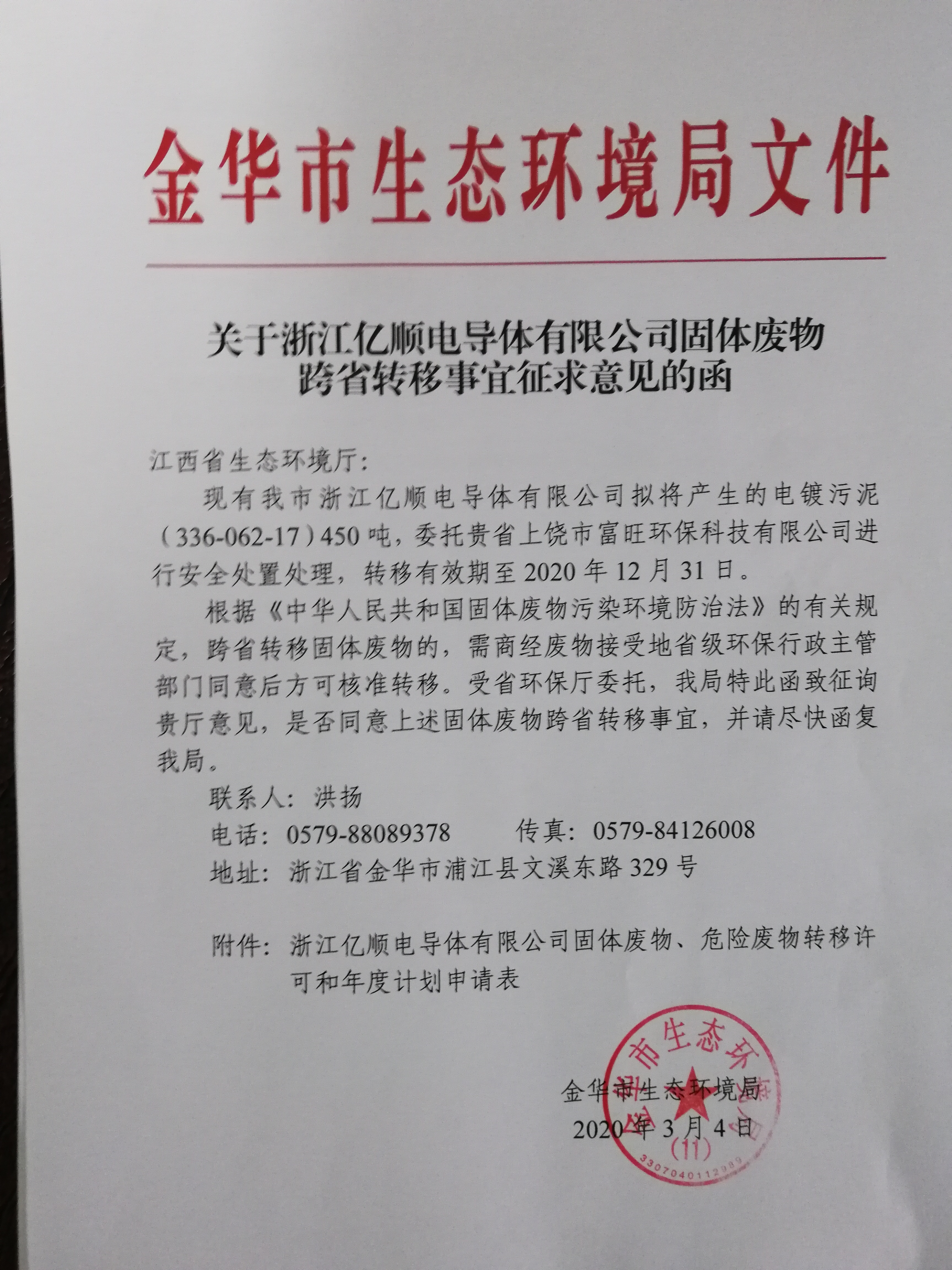 “万万没想到,只要打一个电话,电脑上填写一下信息,在浦江就能办理江西的转移审批了。”3月3日,长期需要固体废物、危险废物跨省转移的浙江亿顺电导体有限公司企业负责人,在金华市生态环境局浦江分局固废中心工作人员电话告知相关政策后,通过网上提交危险废物跨省转移(移出)申请,办好了跨省危废(固废)转移审批。